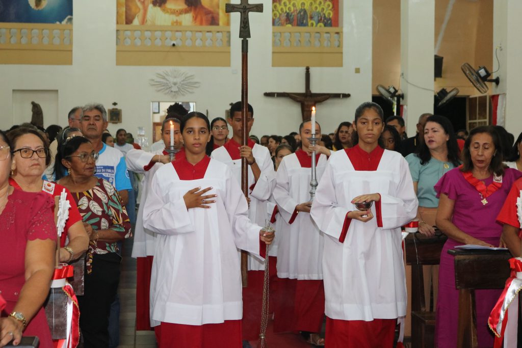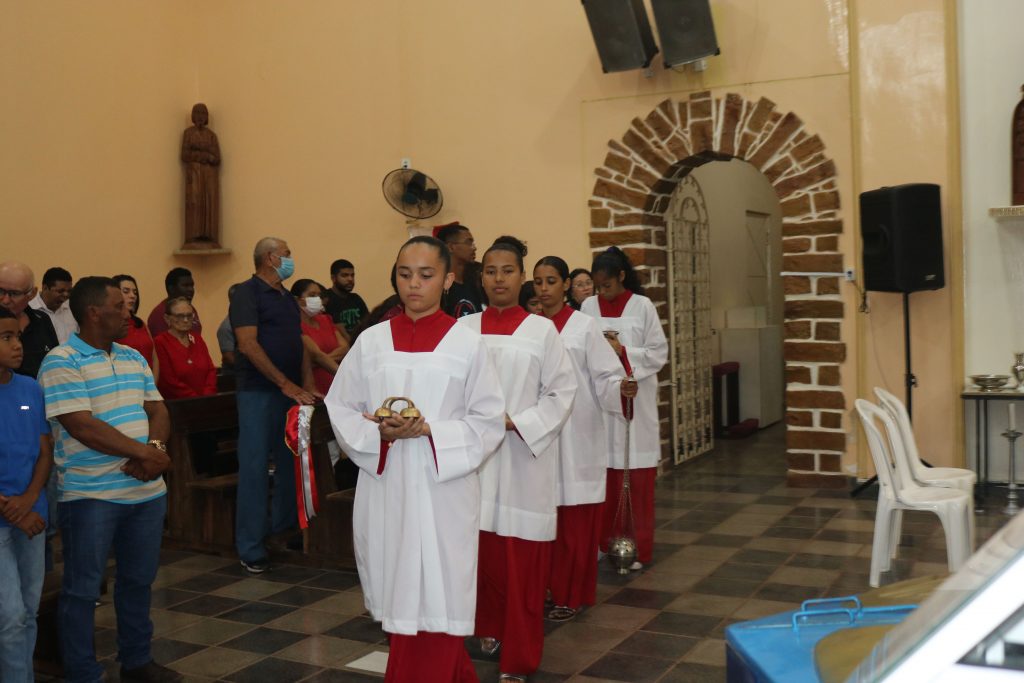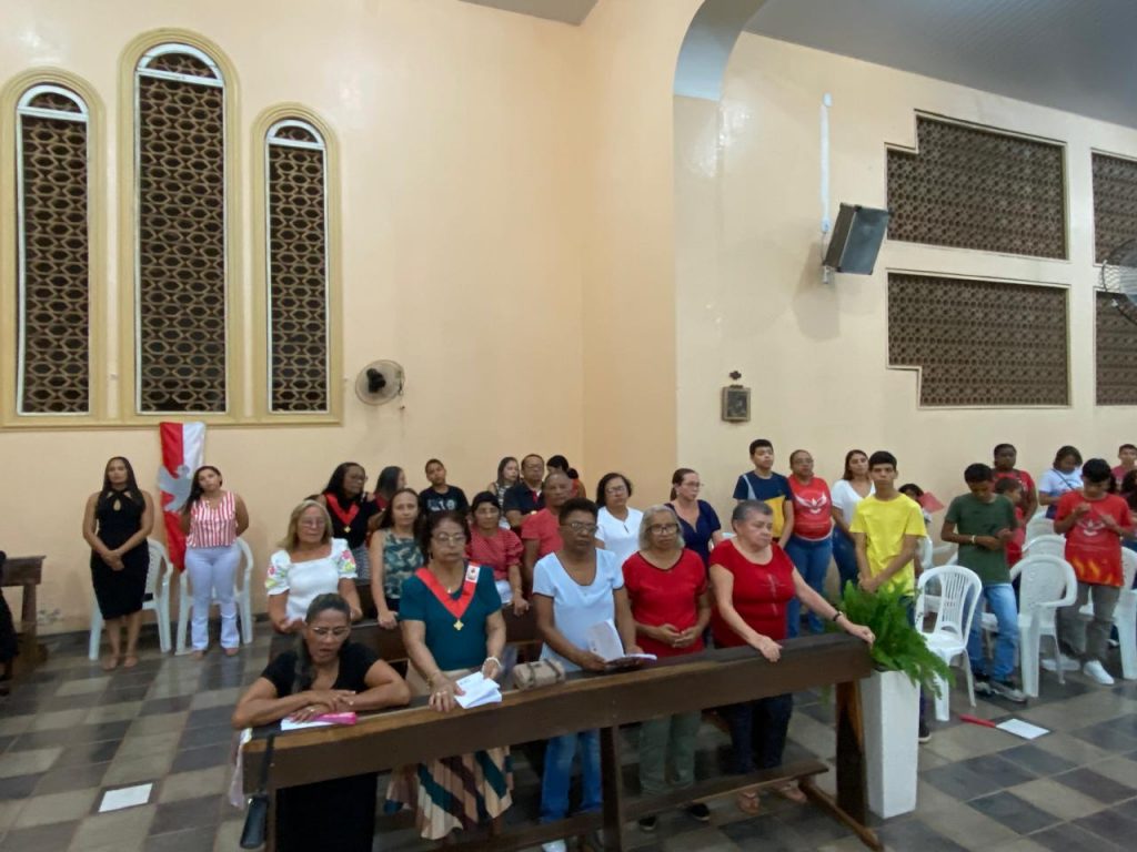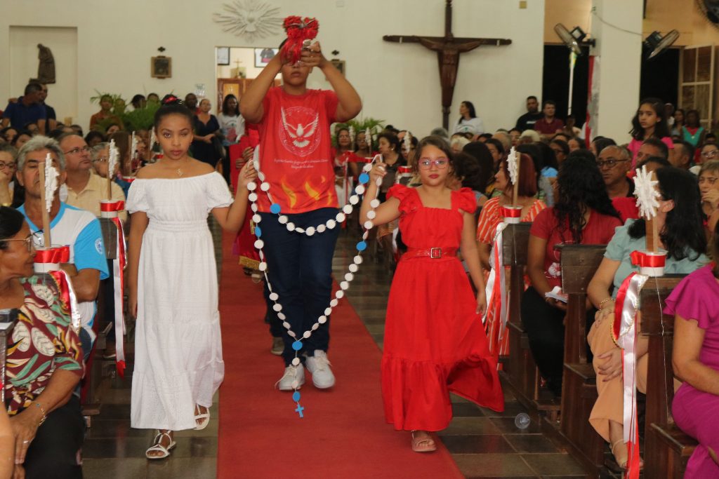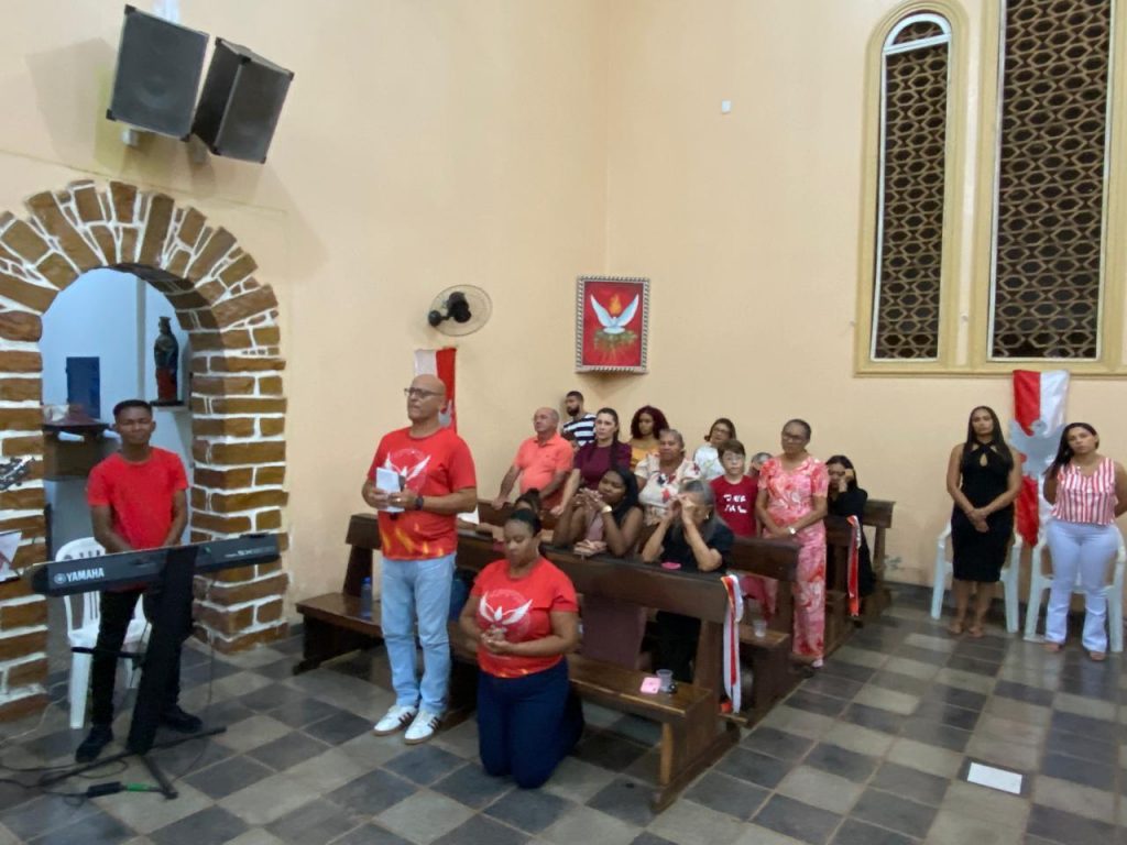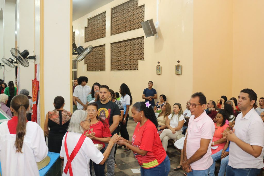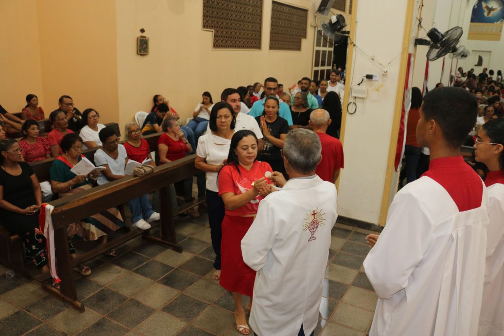 A sétima noite da novena em homenagem ao Divino Espírito Santo em Simplício Mendes foi marcada por momentos de fé, interação e emoção. A missa, presidida pelo Padre Edivaldo Pereira de São Francisco de Assis do Piauí e concelebrada pelo Padre Kleyton Vieira, contou com a animação vibrante de Walterlânia, Wellington e Claudiney.