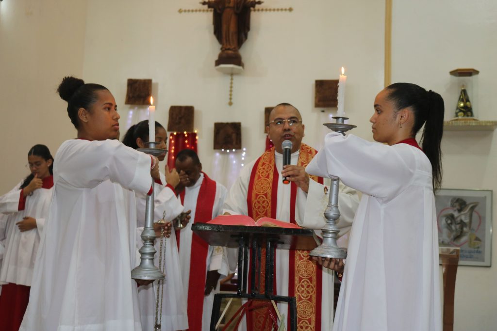 Como tem sido uma constante nas noites de novena, a participação dos fiéis foi significativa, preenchendo o ambiente com um espírito de comunidade e devoção. Durante sua homilia, o Padre Edivaldo manteve uma interação dinâmica com os participantes, fazendo perguntas que eram respondidas prontamente pela congregação. Ele citou passagens do evangelho e das cartas bíblicas, pedindo aos fiéis que repetissem suas palavras, criando um momento de reflexão e união.
