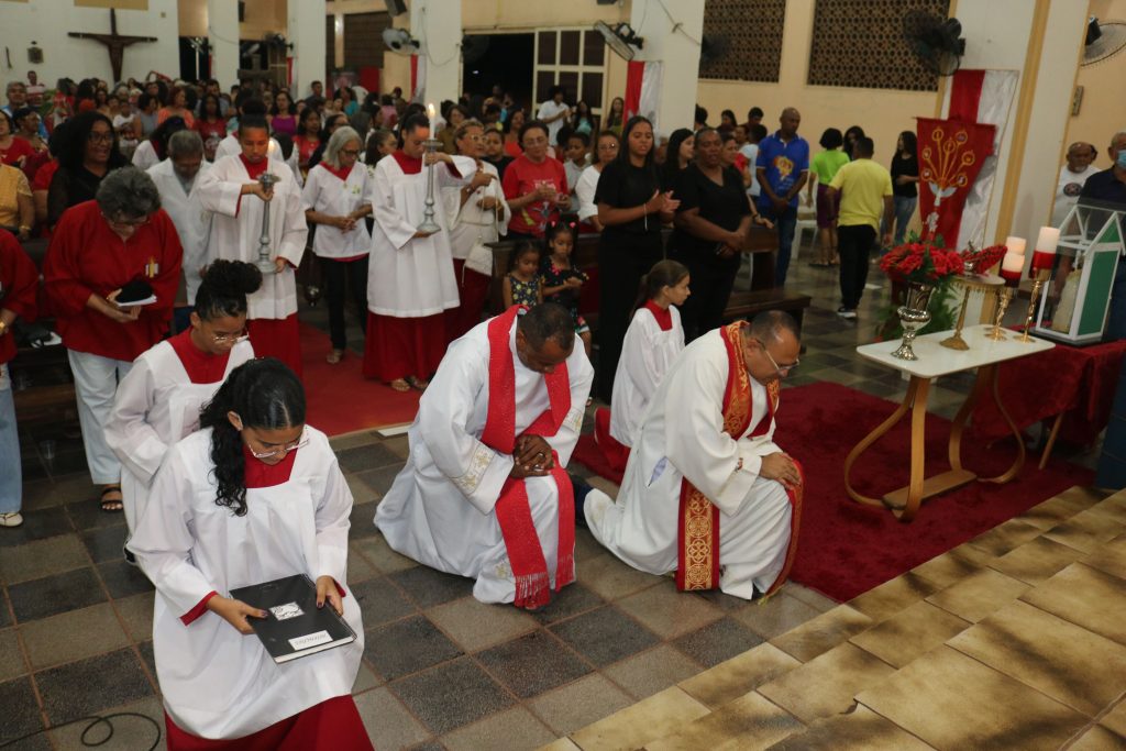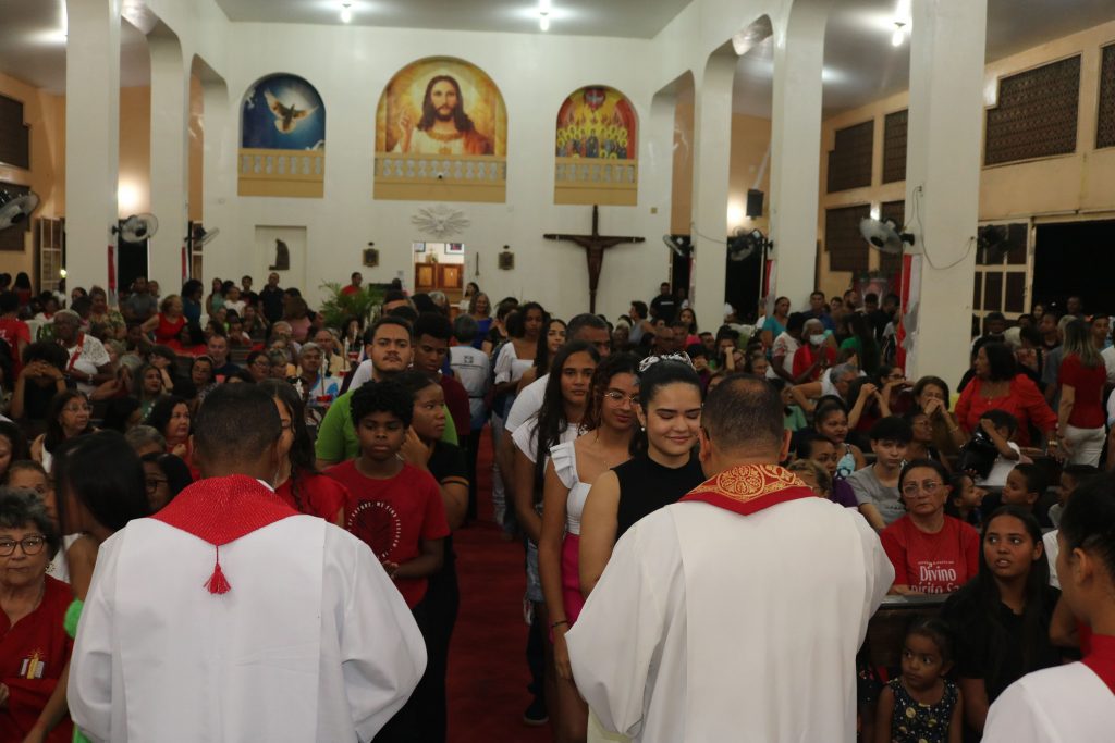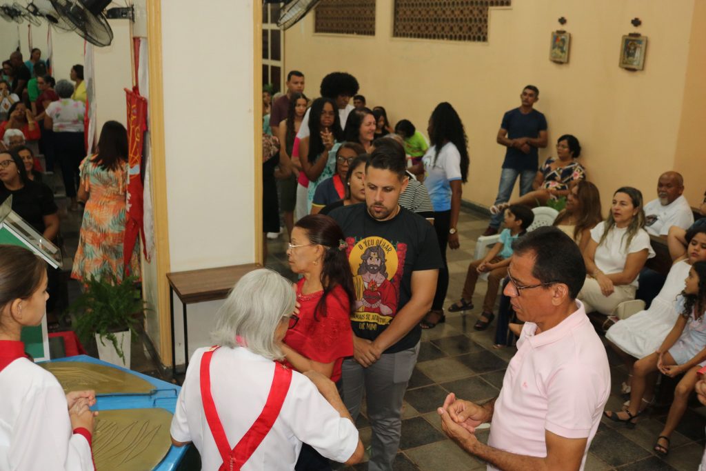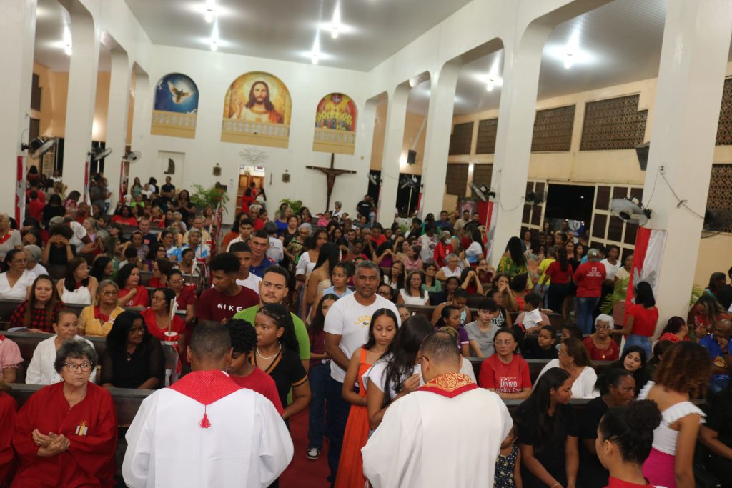 Para encerrar a noite, o Padre Kleyton Vieira expressou seus agradecimentos, mencionou os aniversariantes do dia e convidou a assembleia a homenageá-los com o tradicional canto de parabéns. A celebração deixou todos os presentes com um sentimento de gratidão e esperança, ansiosos pelas próximas noites da novena.