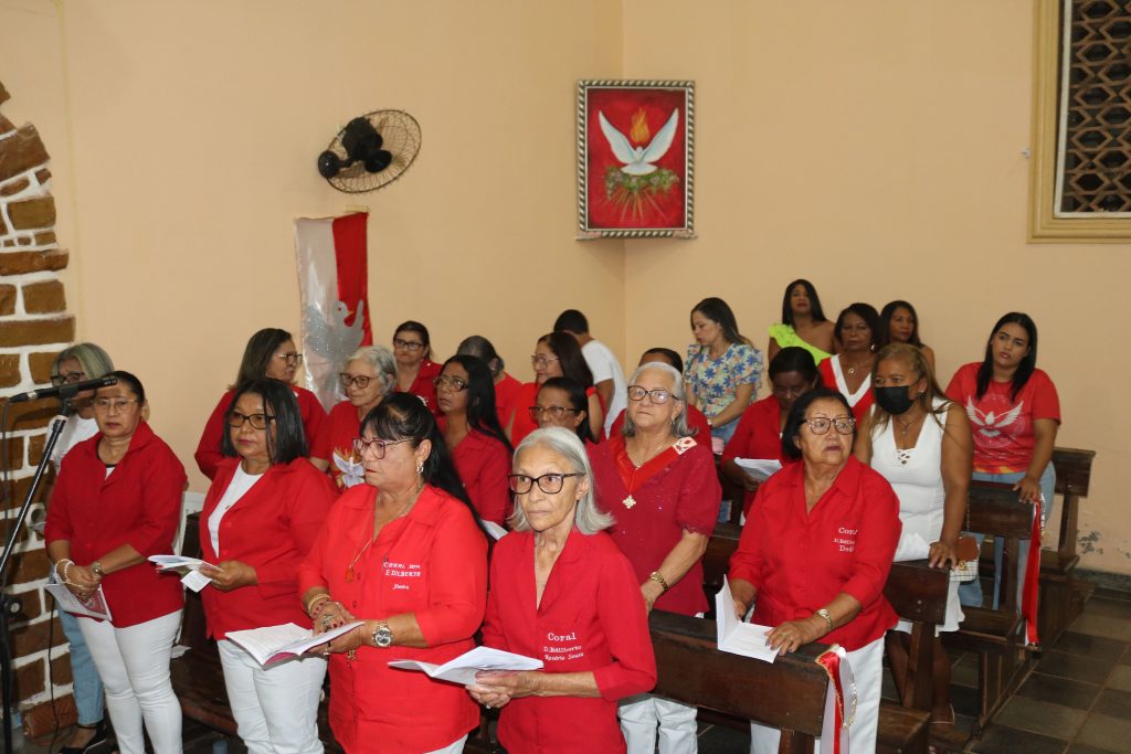O Coral Dom Edilberto, com sua melodia celestial, encantou os presentes, enquanto a transmissão ao vivo pelas redes sociais da paróquia permitiu que ainda mais pessoas se unissem em oração, mesmo à distância.
