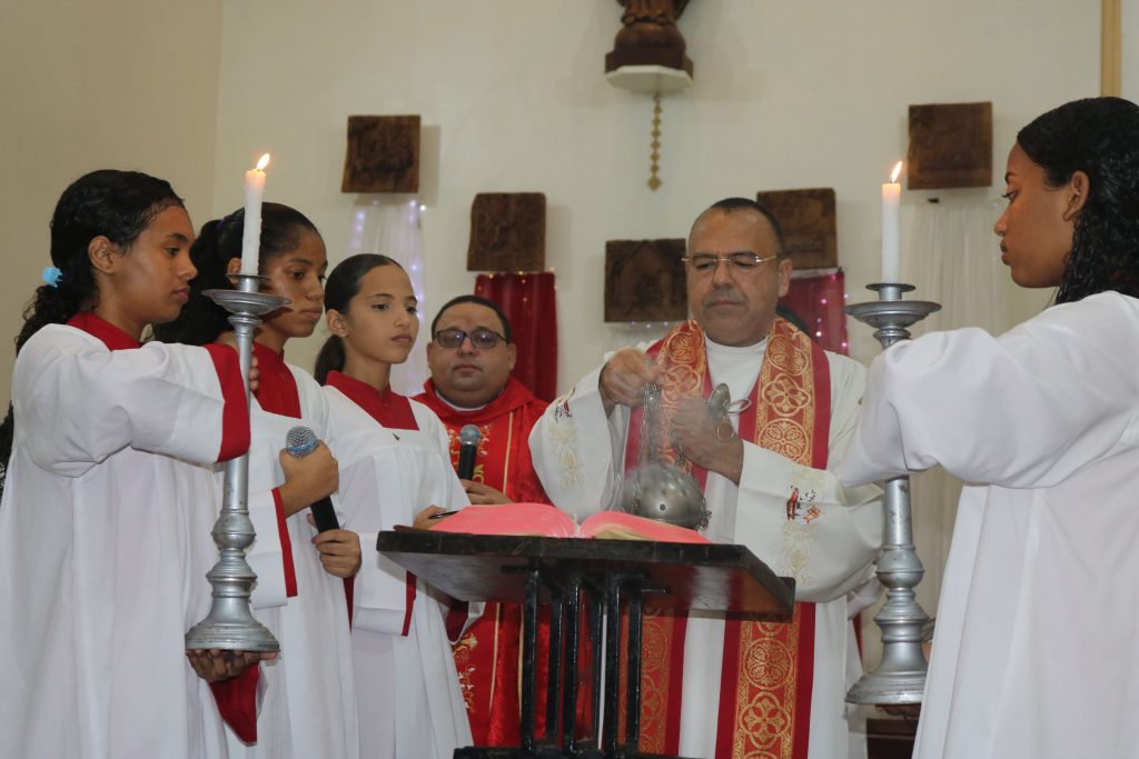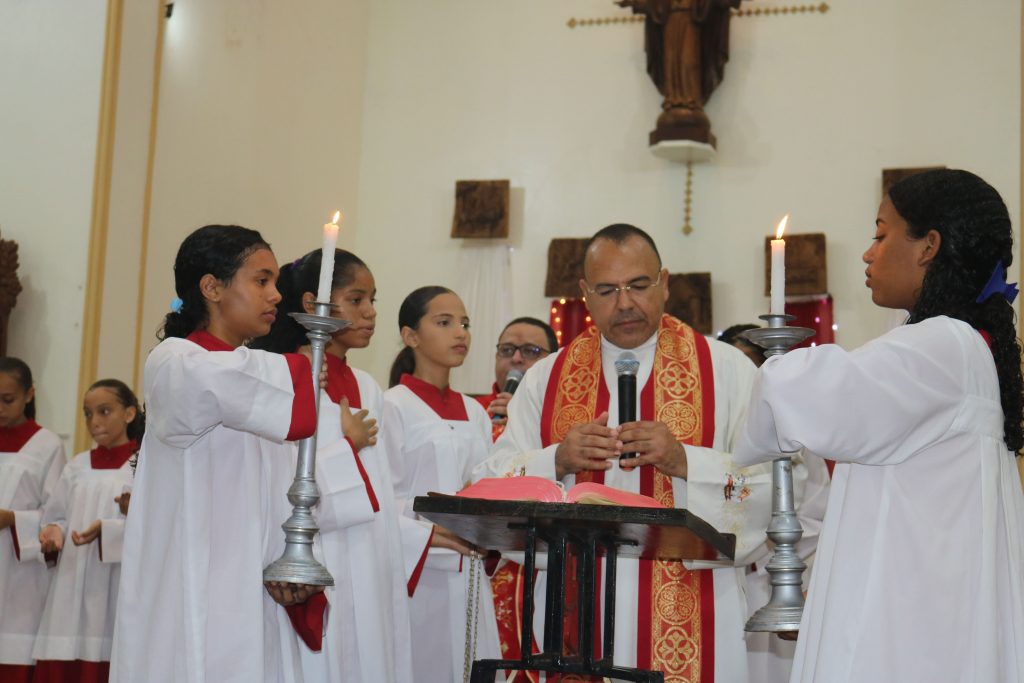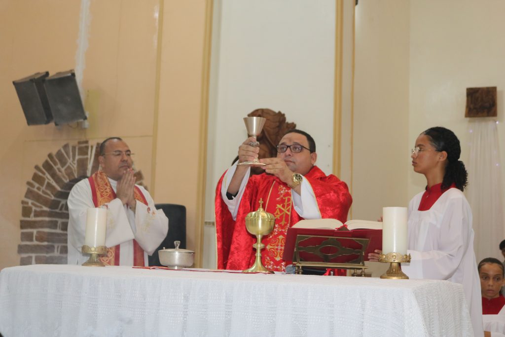 Sob a presidência do Padre Julielmo e a concelebração do Padre Kleyton Vieira, a missa foi conduzida com solenidade e espiritualidade.