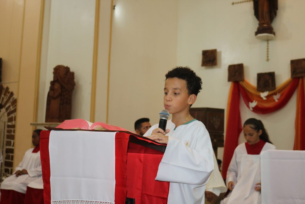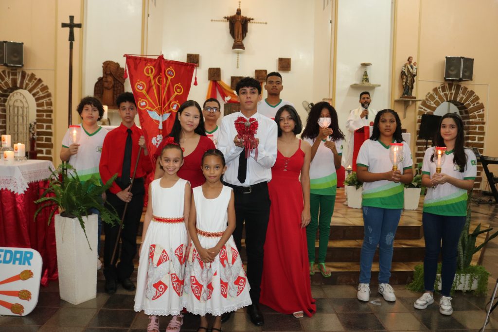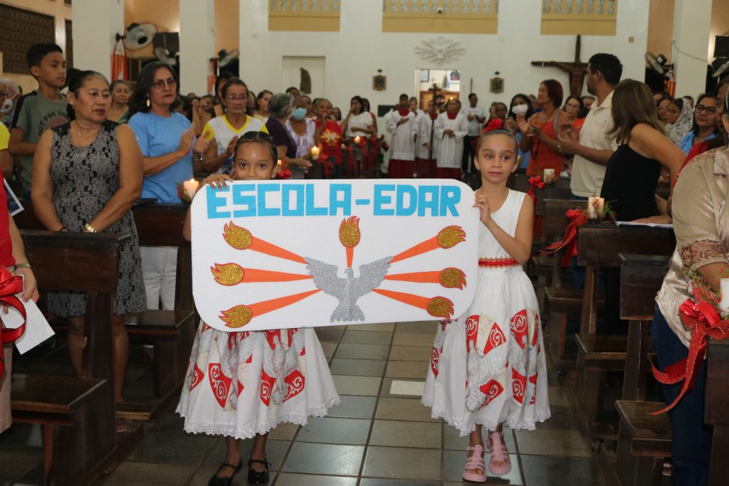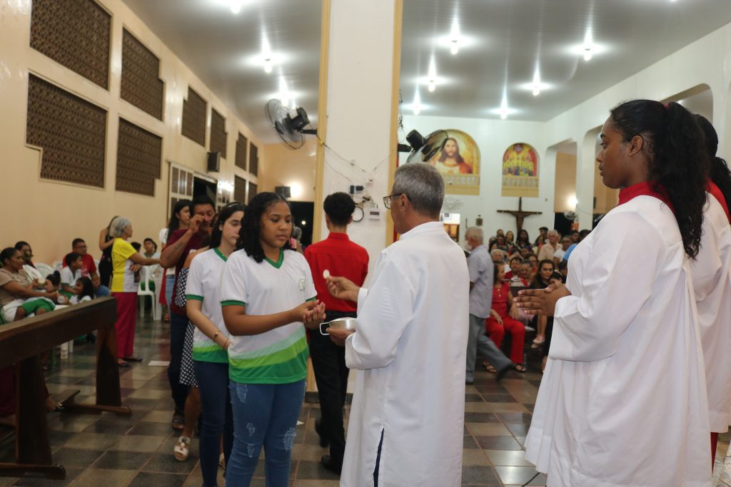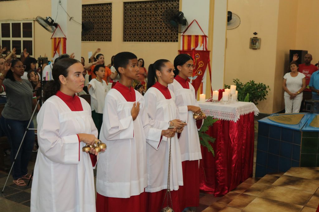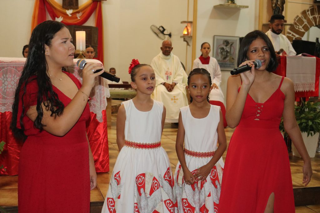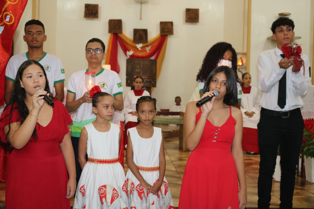 Antes da bênção final os estudantes da Escola Djanira Alves Rodrigues fizeram uma apresentação denominada Adoração ao Divino Espírito Santo.