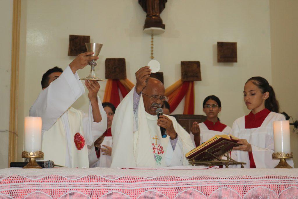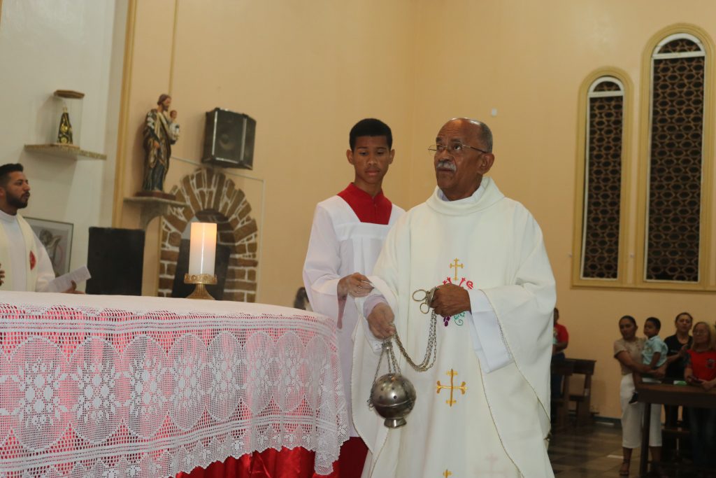 A missa foi presidida pelo Padre Juvenal Soares da Paróquia Santa Rosa de Lima da cidade de Santa Rosa do Piauí e concelebrado pelo Vigário Paroquial de Simplício Mendes, Padre Wellington Rodrigues.