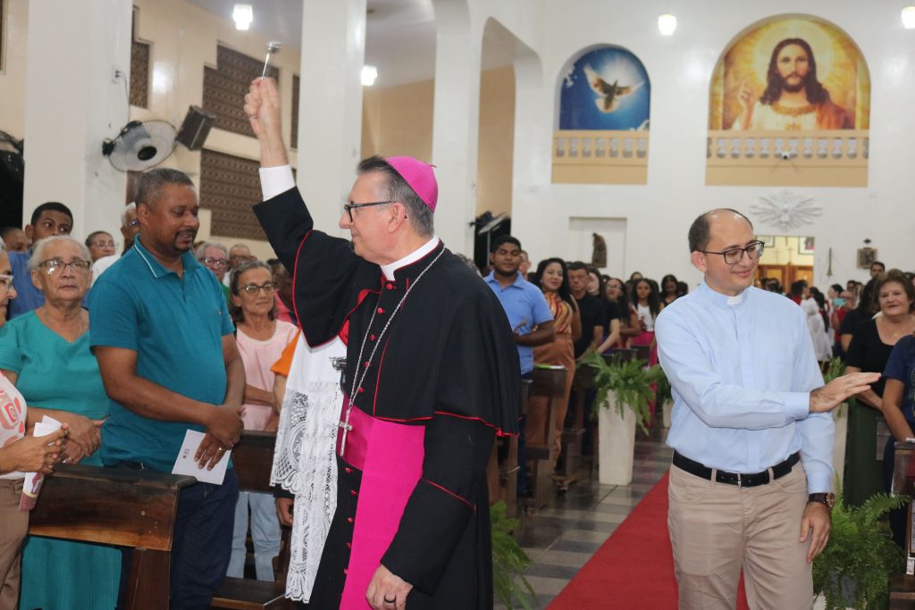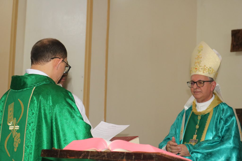 Os ritos continuaram com a entrega da chave da pia batismal e do confessional, além da chave do sacrário, que foi levado pelo ministro extraordinário da santa eucaristia, o senhor Osternes e entregue ao Padre Welson, que abriu o sacrário e  em silêncio ficou em breve momento de oração e reflexão ao lado do bispo.