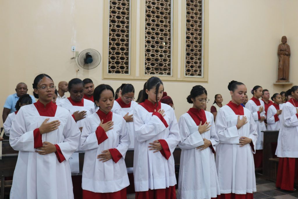 Antes da bênção final, a celebração ganhou um toque especial com o canto dos parabéns em homenagem aos aniversariantes do dia.