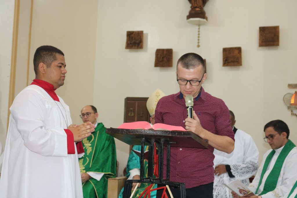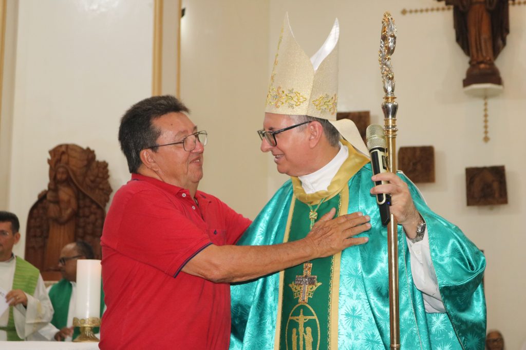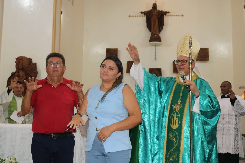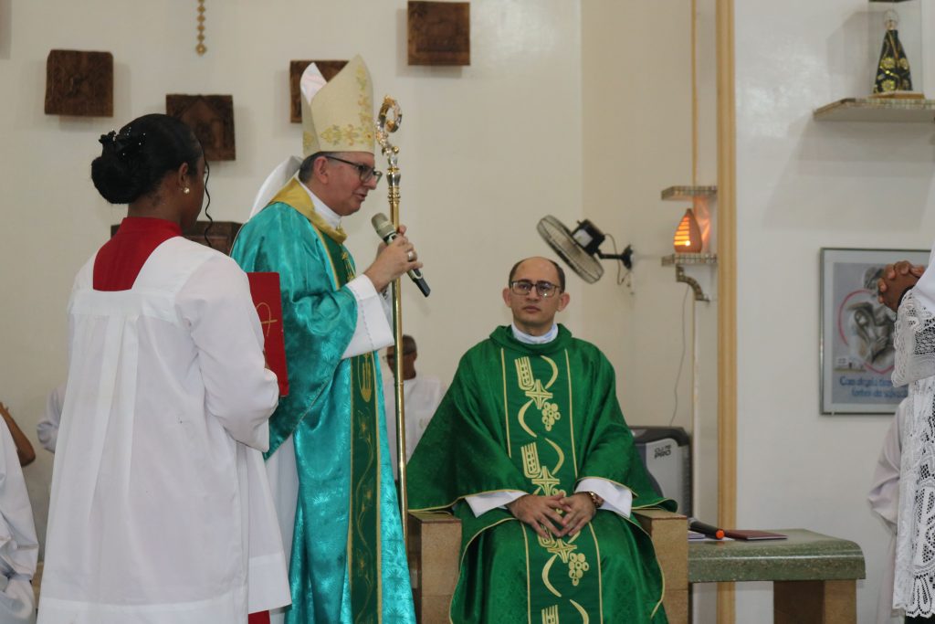 A missa prosseguiu com o rito normal e, após a comunhão, o casal Claudi e Simiranes leu uma mensagem de acolhida em nome de todas as pastorais.