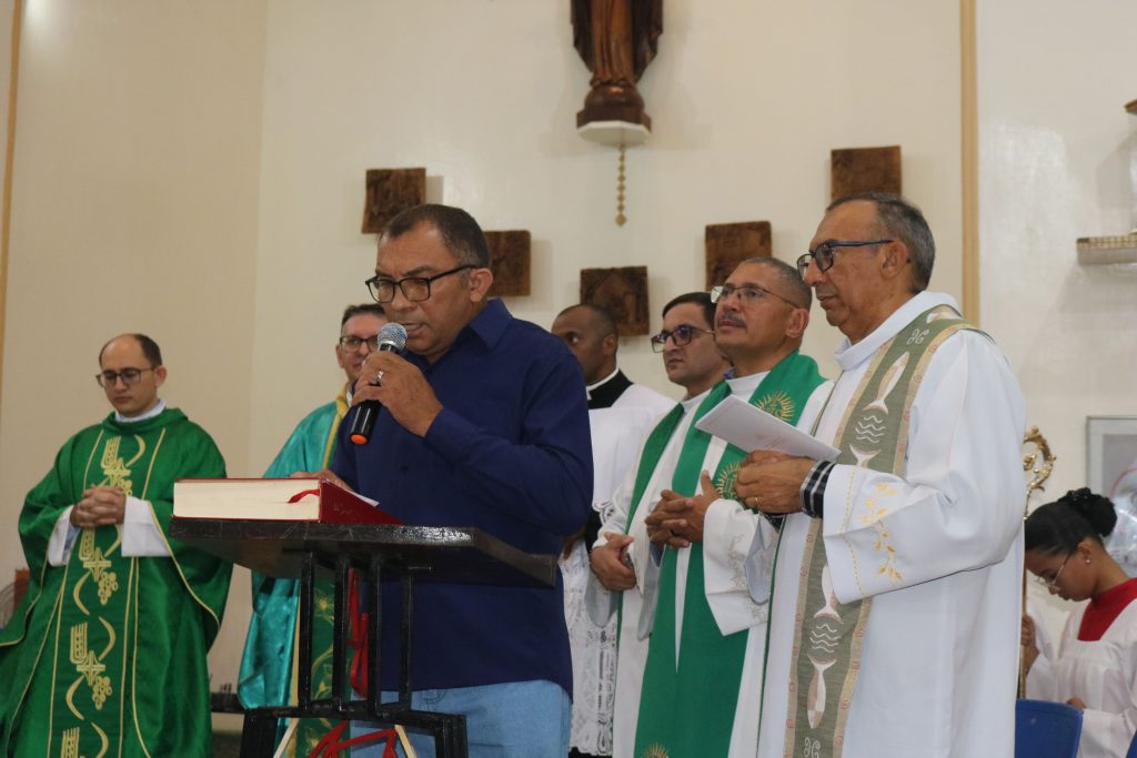 O prefeito Márcio Moura também fez uso da palavra, expressando boas-vindas e se colocando à disposição para colaborar com as iniciativas sociais da paróquia.