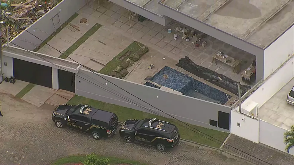 Agentes da Polícia Federal cumprem mandados em mansão em Vargem Grande — Foto: Reprodução