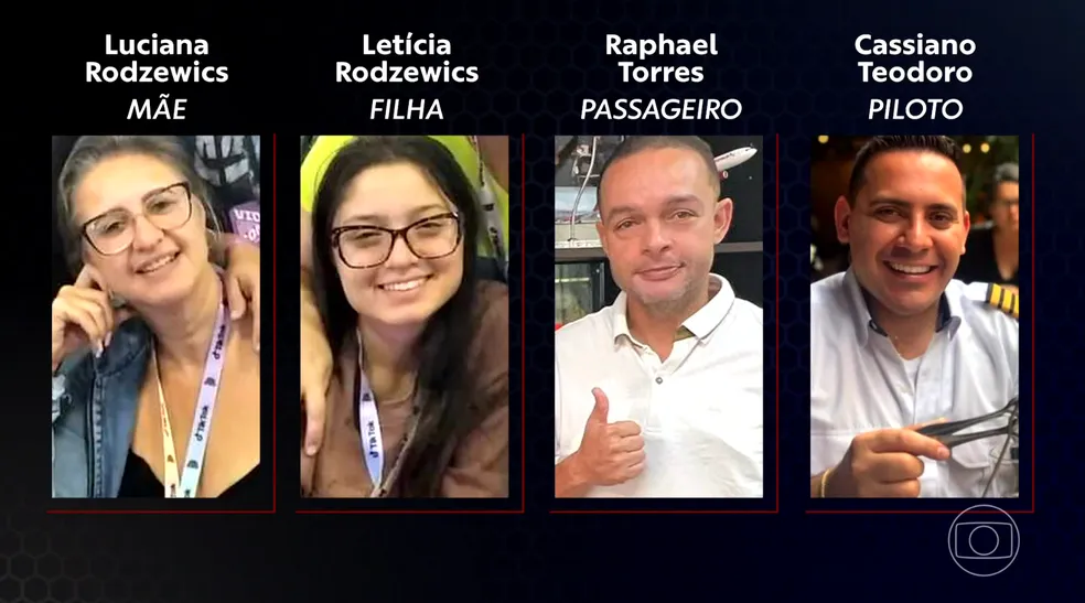 Na aeronave, estava o piloto, duas mulheres, que são mãe e filha, e um amigo das duas.