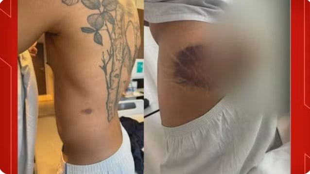 Danilo diz que, no hospital, ele foi diagnosticado com insuficiência renal, rabdomiólise – ruptura do músculo esquelético, ruptura no menisco, hérnia de disco e lesões lombar e cerebral.