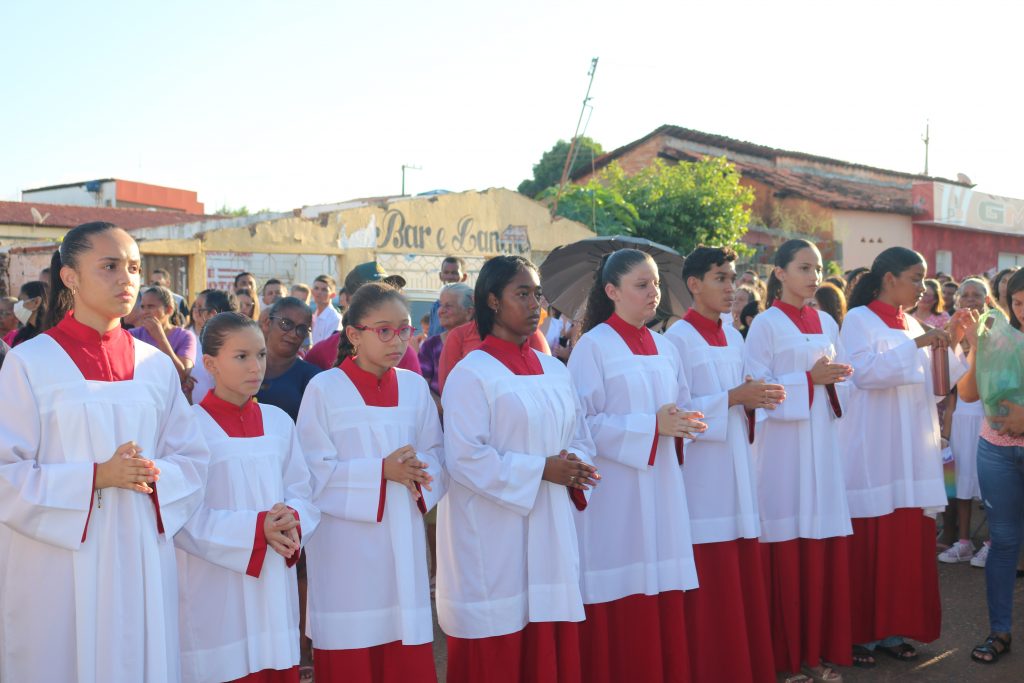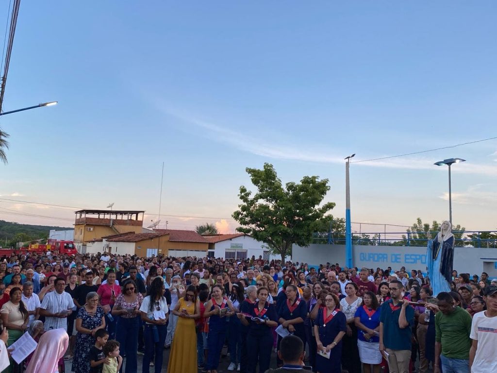 Ao longo do trajeto, a presença ativa da polícia militar garantiu a segurança dos participantes, organizando o trânsito e orientando motoristas e motociclistas, demonstrando assim o apoio e respeito das autoridades locais por essa manifestação religiosa tão significativa para a comunidade de Simplício Mendes.