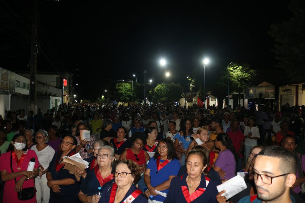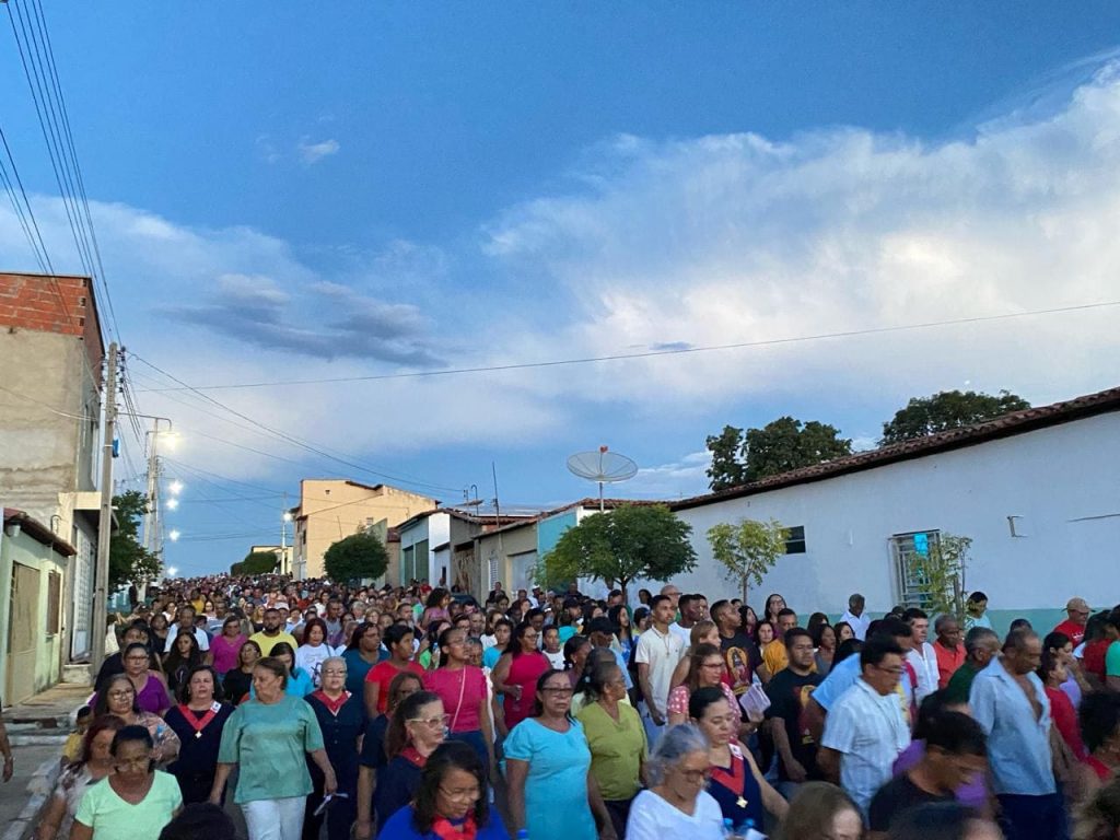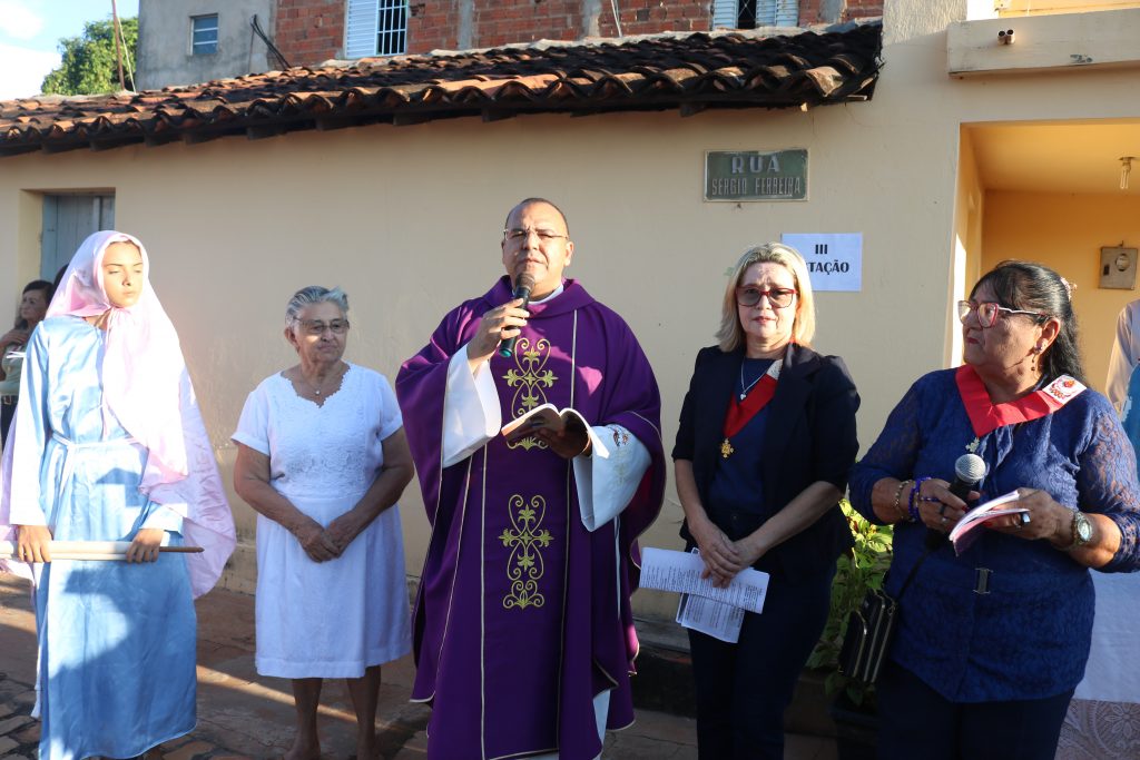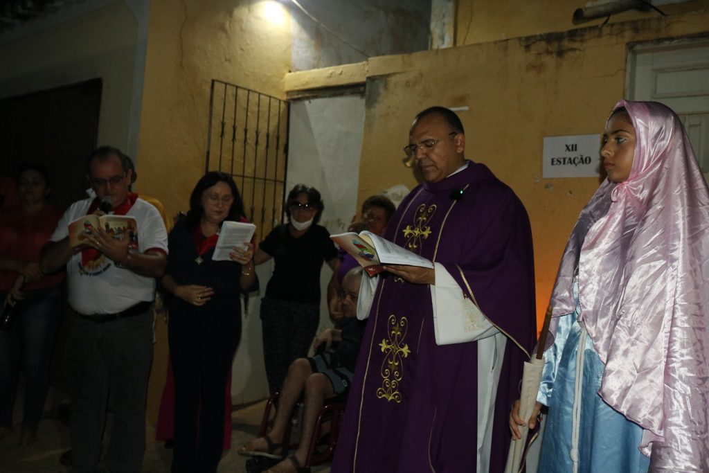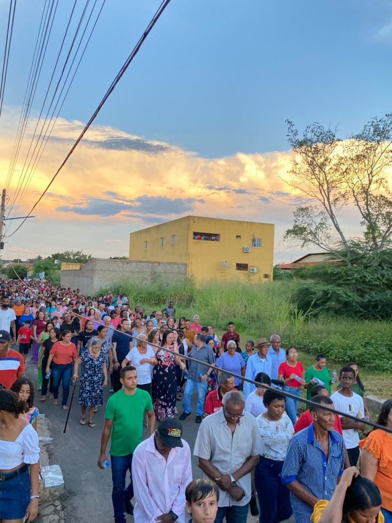 Nesse local, os corações se enchem de emoção e os olhos se enchem de lágrimas, enquanto o Pároco Padre Kleyton Vieira proferia o sermão, renovando a mensagem de amor e redenção. Em meio ao canto das lamentações entoado por Keyla Carvalho em algumas estações, a procissão segue seu curso, mantendo viva a tradição que une gerações em um só propósito: a celebração da fé.