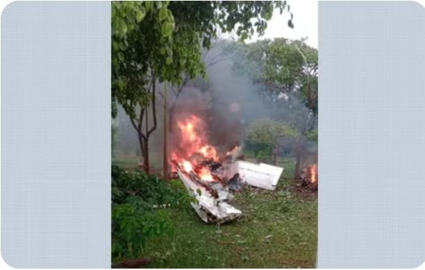 Vídeos que circulam nas redes sociais mostram um avião monomotor em chamas logo depois de cair e explodir. Nas gravações, também é possível ouvir o desespero de moradores próximos que presenciavam a cena (assista acima).