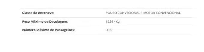 A aeronave era da categoria experimental e tinha situação regular na Agência Nacional de Aviação Civil (Anac), mas estava com mais passageiros do que o permitido, já que as cinco pessoas que morreram estavam a bordo.