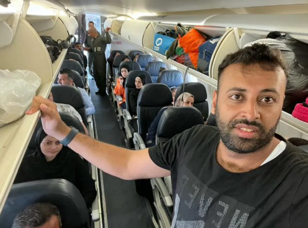 Brasileiros de Gaza no interior da aeronave (Reprodução)