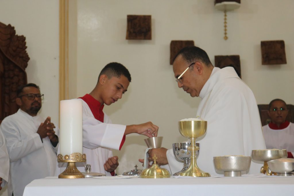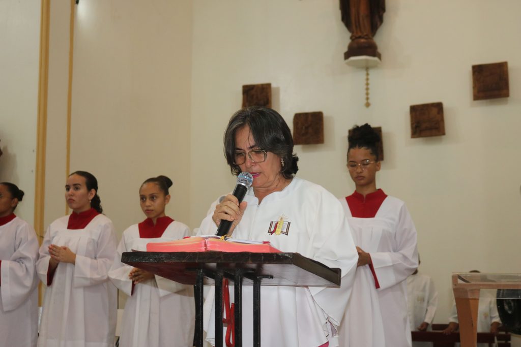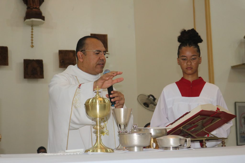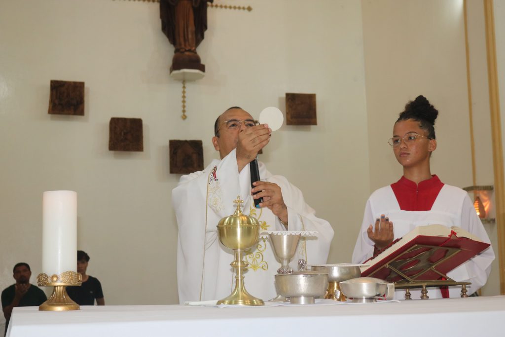 Em seguida, em um gesto de profundo respeito e adoração, o Santíssimo Sacramento foi transferido para um lugar de destaque à esquerda do presbitério, onde permaneceu exposto para a adoração dos fiéis até a meia-noite. Durante essas horas de vigília, os diversos grupos e pastorais da paróquia se revezaram em oração, em um momento de comunhão e devoção diante da presença real de Cristo na Eucaristia.