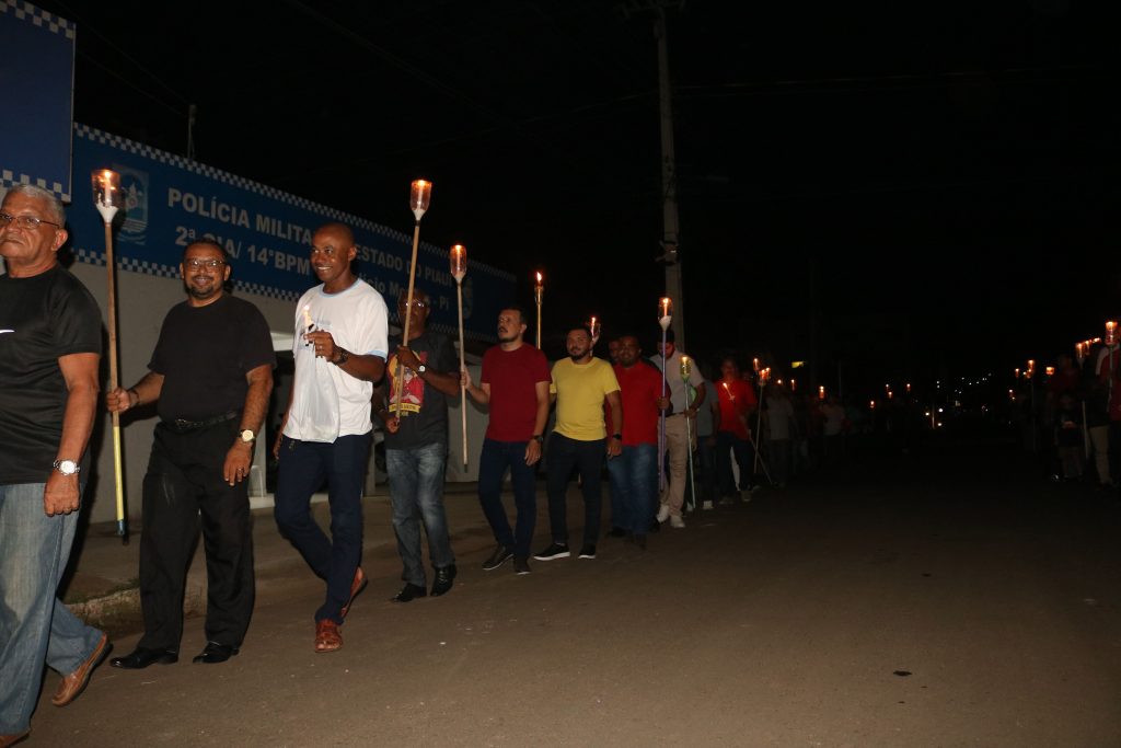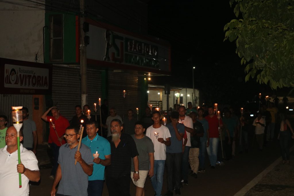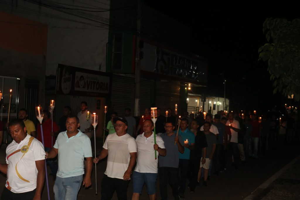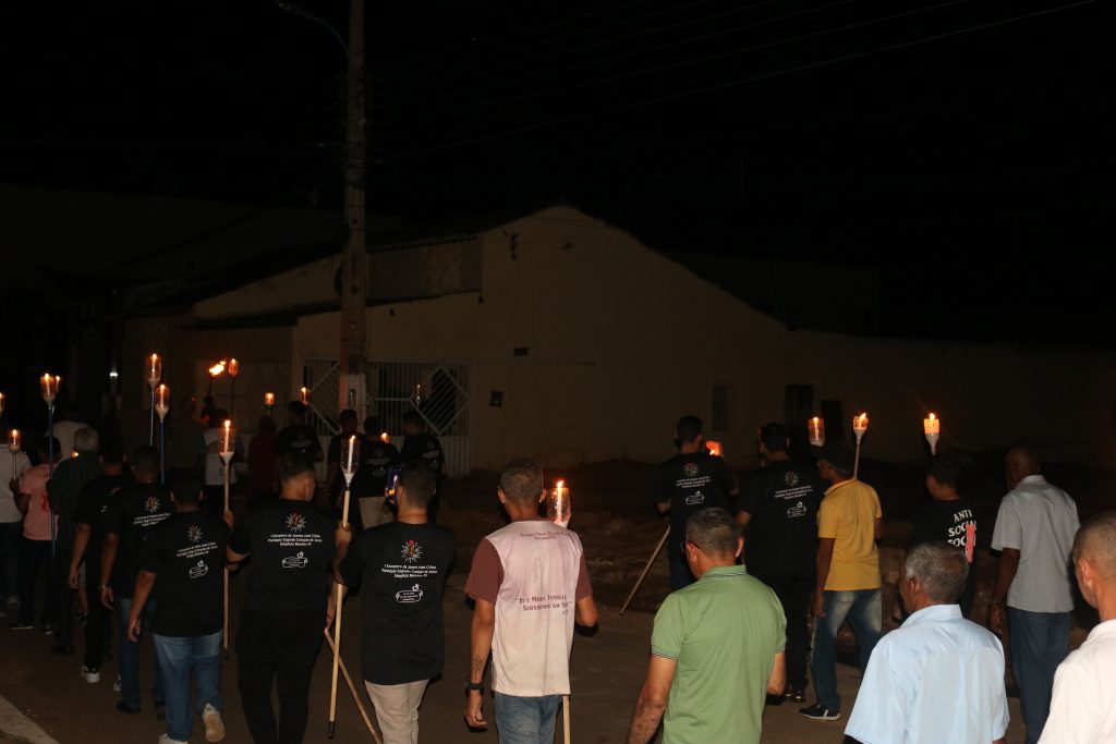 Ao cair da noite, os fiéis se reuniram novamente para a tradicional procissão do fogaréu, uma expressão vívida da paixão e do sofrimento de Cristo. Acompanhado somente pelos homens da comunidade, o Padre Kleyton entoava cânticos e orações, enquanto as velas acesas iluminavam o caminho, em meio à escuridão da noite, recriando simbolicamente a perseguição e a prisão de Jesus.