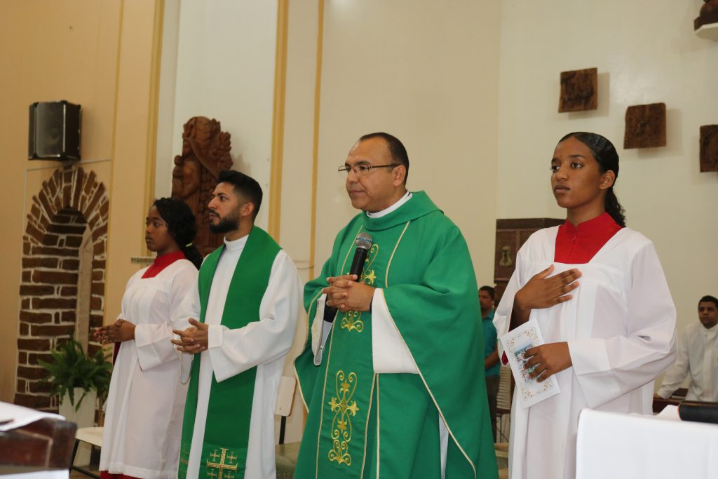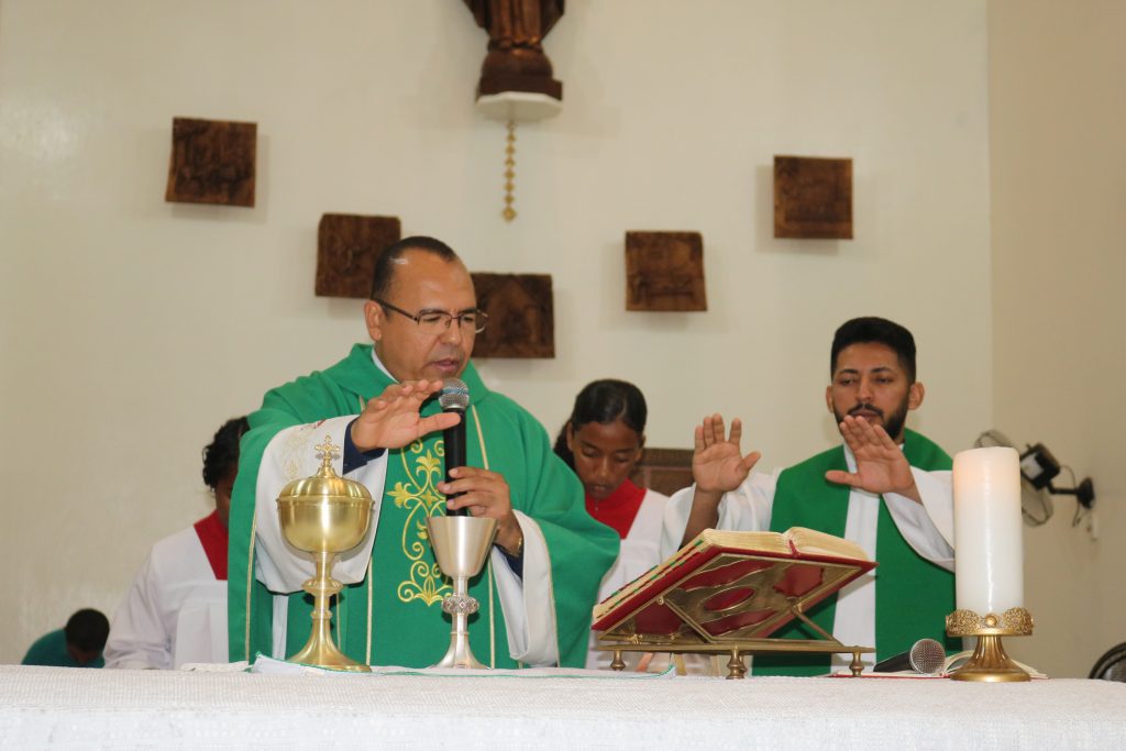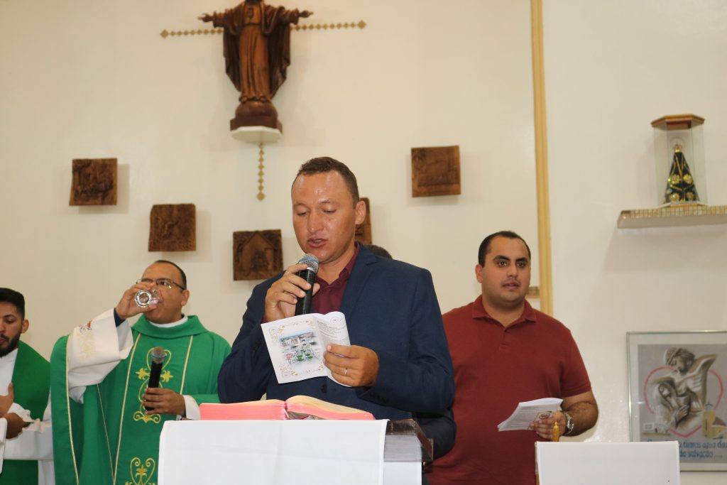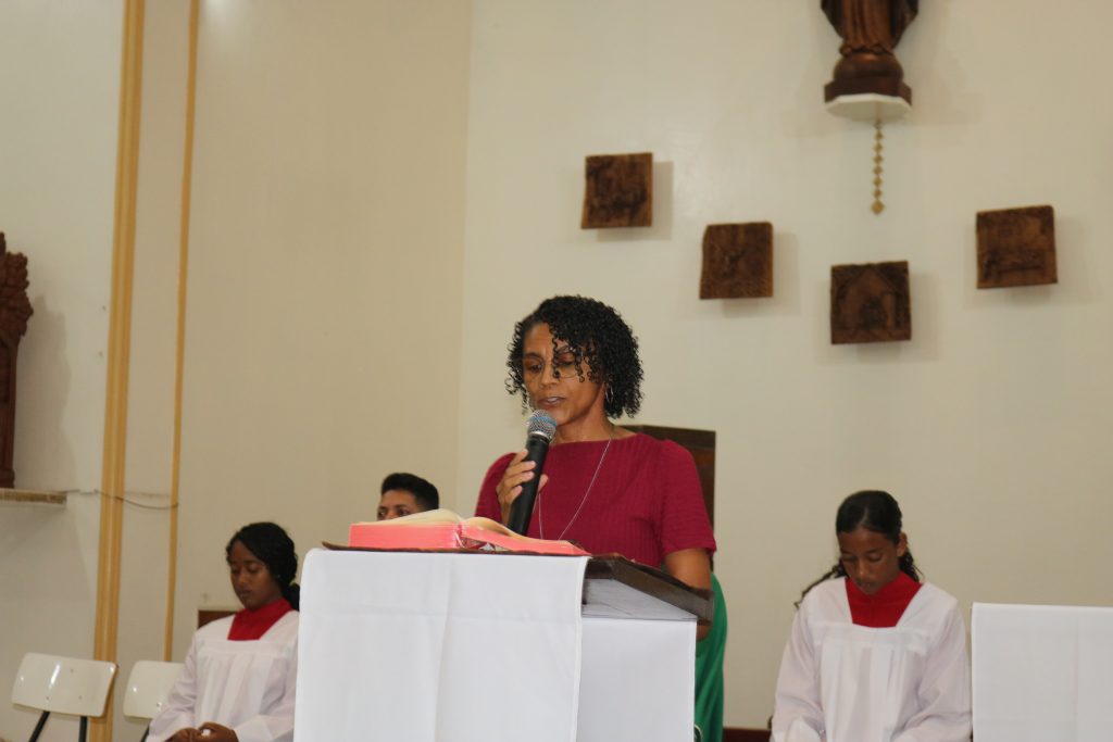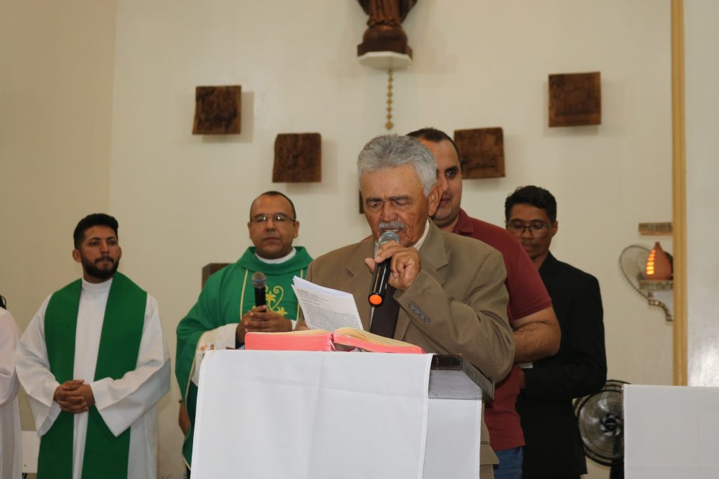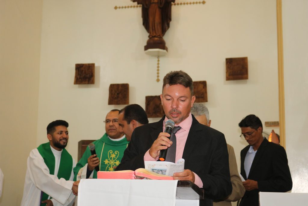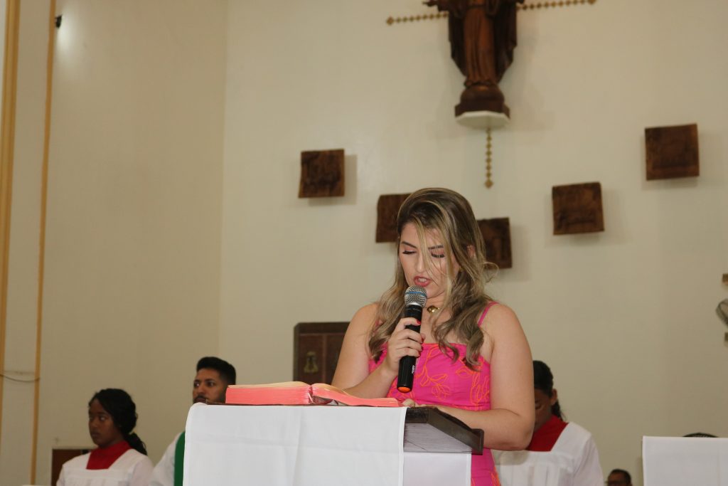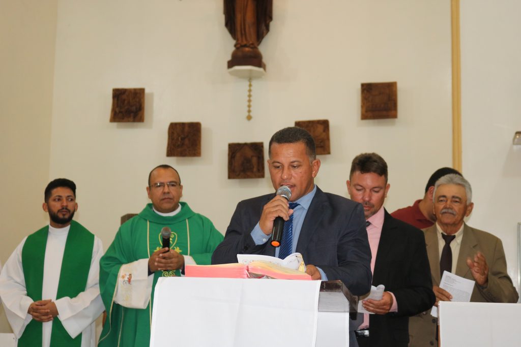 A cerimônia teve momentos significativos, com o prefeito e a primeira-dama realizando as leituras e os vereadores conduzindo as preces, demonstrando o profundo envolvimento da liderança local com a celebração.