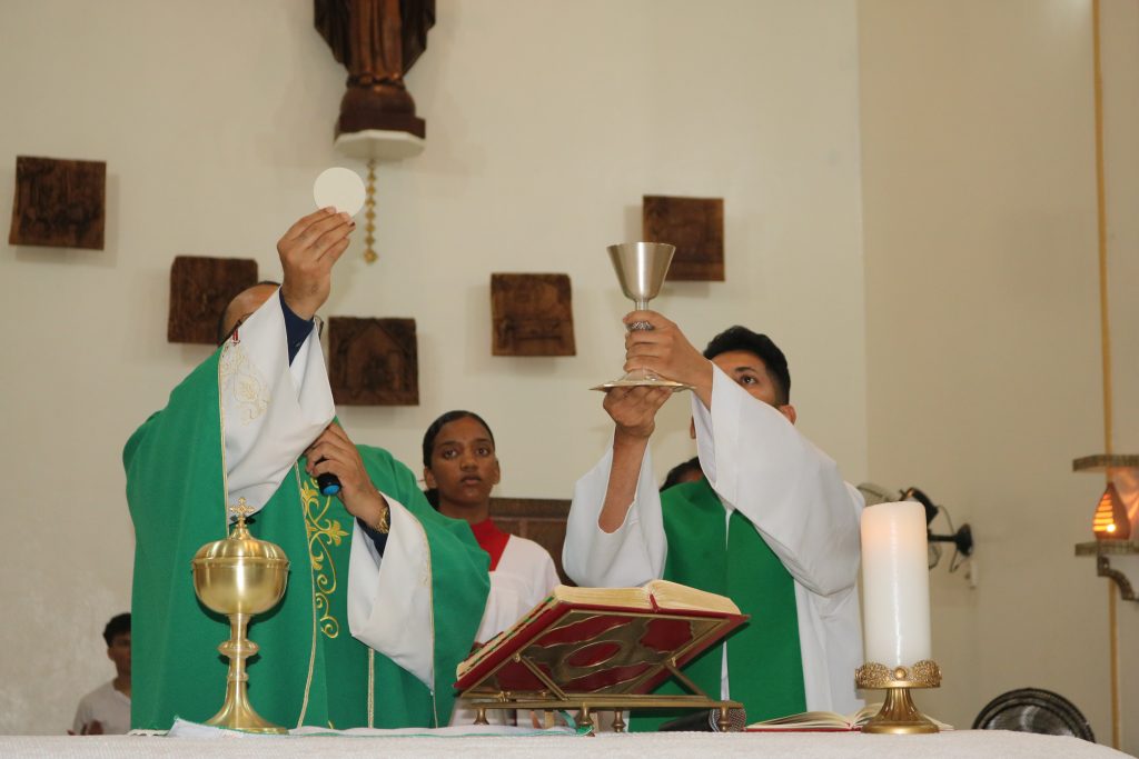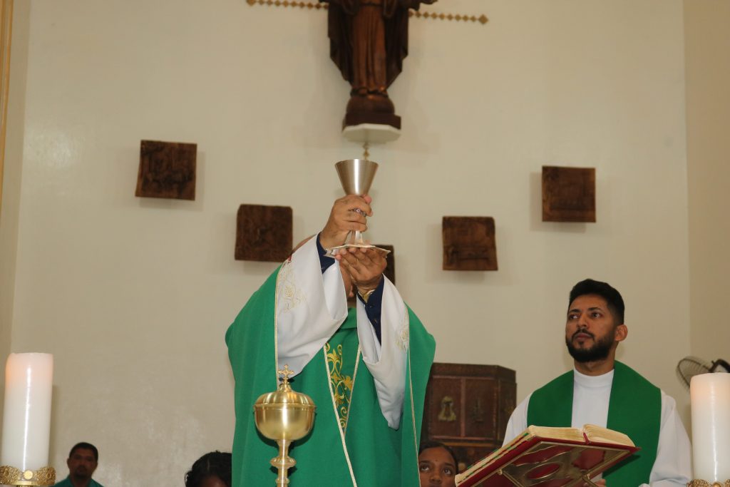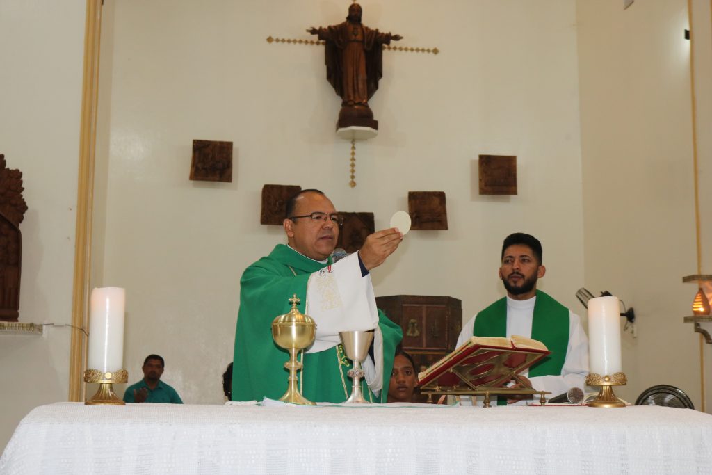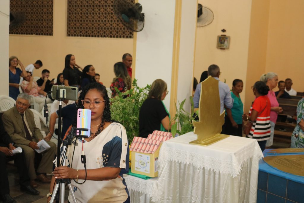 Durante o ofertório, foram apresentados objetos simbólicos que representavam as diferentes secretarias municipais, destacando a unidade e o compromisso de todas as áreas em contribuir para o desenvolvimento de Simplício Mendes. O prefeito entregou ao Padre Kleyton um cálice, enquanto o vice-prefeito apresentou as galhetas com água e vinho, gestos de profunda conexão entre a administração municipal e a espiritualidade da cidade.