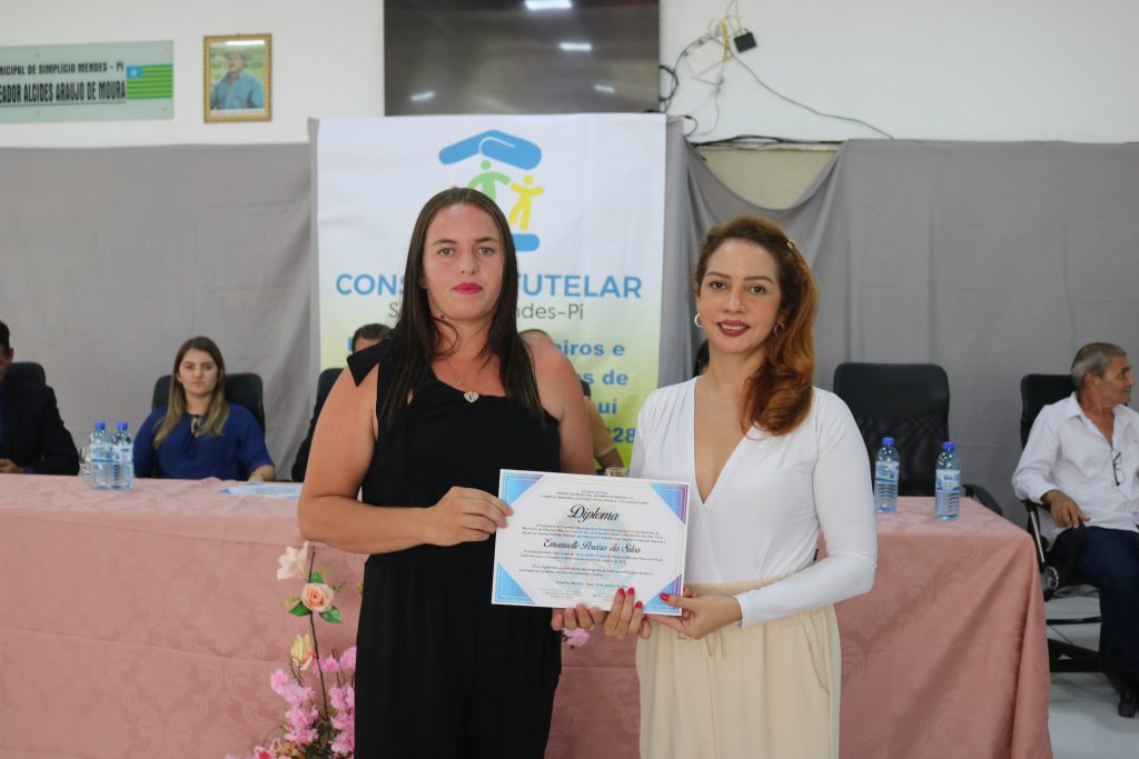 Durante a solenidade, os conselheiros titulares e suplentes foram empossados e receberam seus diplomas, oficializando sua atuação no comando do Conselho Tutelar de Simplício Mendes. Os conselheiros suplentes Ismaille Ferreira e Emanuelle Pereira também foram diplomados, demonstrando a importância de se contar com um time preparado para garantir a proteção e os direitos da criança e do adolescente no município.