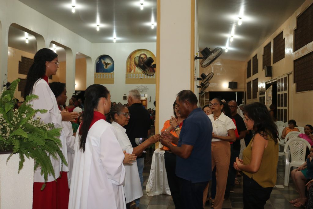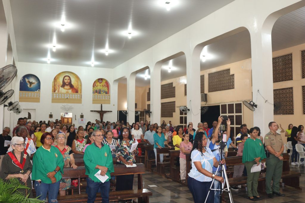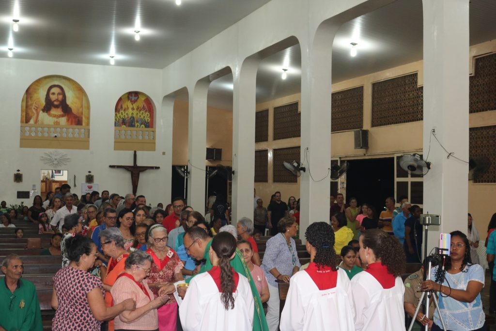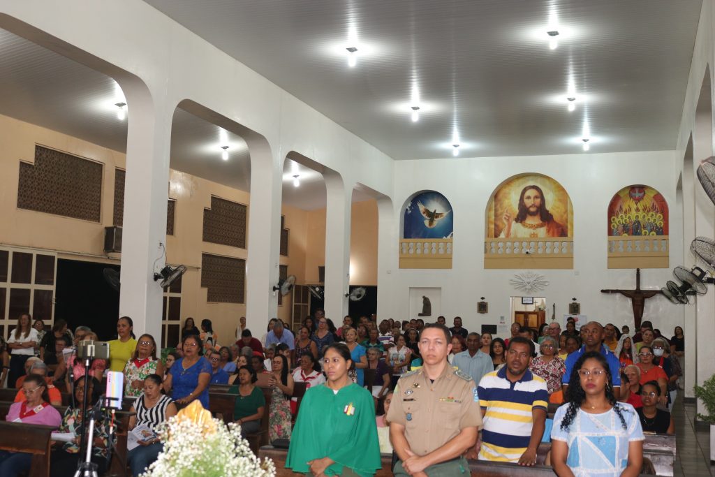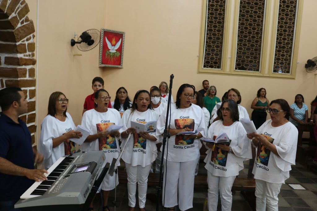 A missa, que teve início às 19 horas, foi celebrada pelo Padre Kleyton Vieira, um líder espiritual querido pela comunidade. A celebração foi marcada pela inspiração musical do Coral Santa Cecília, que elevou os corações dos presentes com suas belas vozes e harmonias.