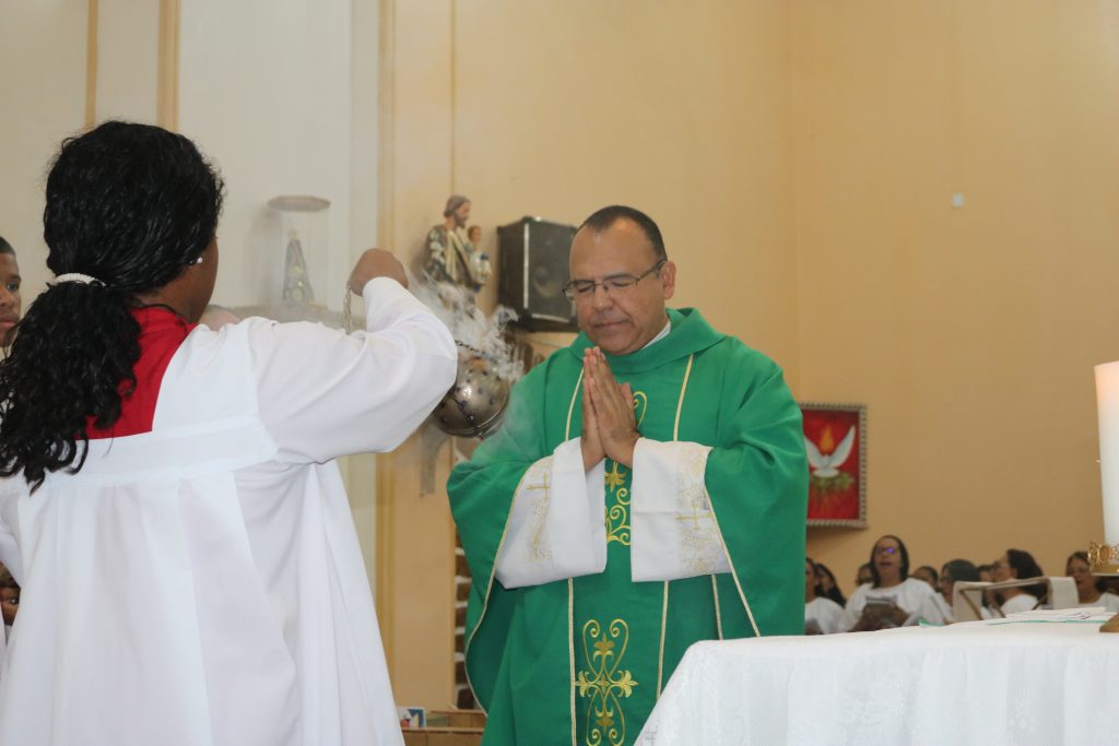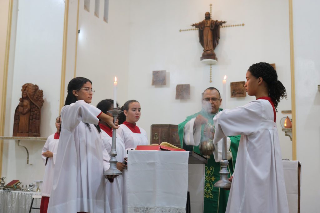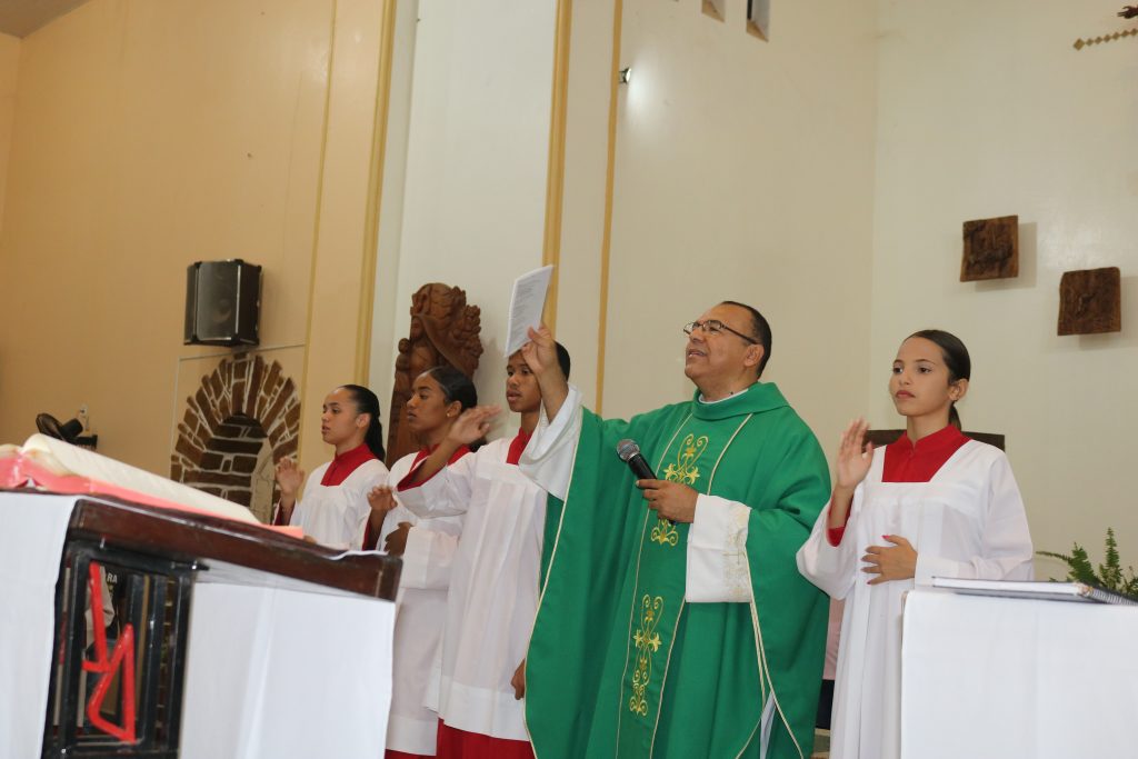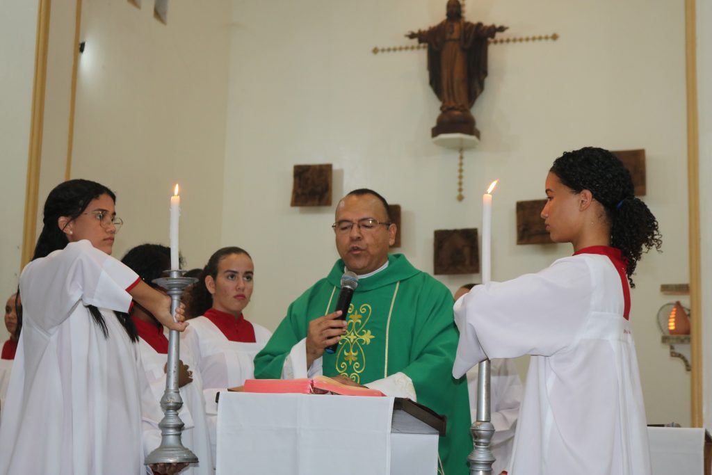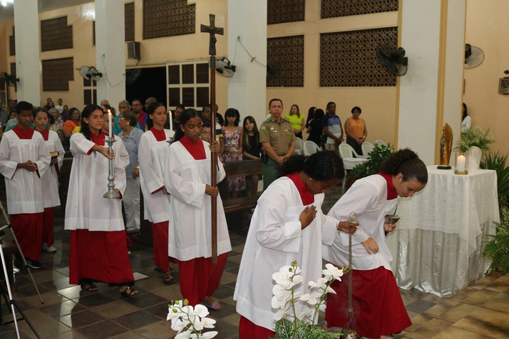A missa, que teve início às 19 horas, foi celebrada pelo Padre Kleyton Vieira, um líder espiritual querido pela comunidade. A celebração foi marcada pela inspiração musical do Coral Santa Cecília, que elevou os corações dos presentes com suas belas vozes e harmonias.