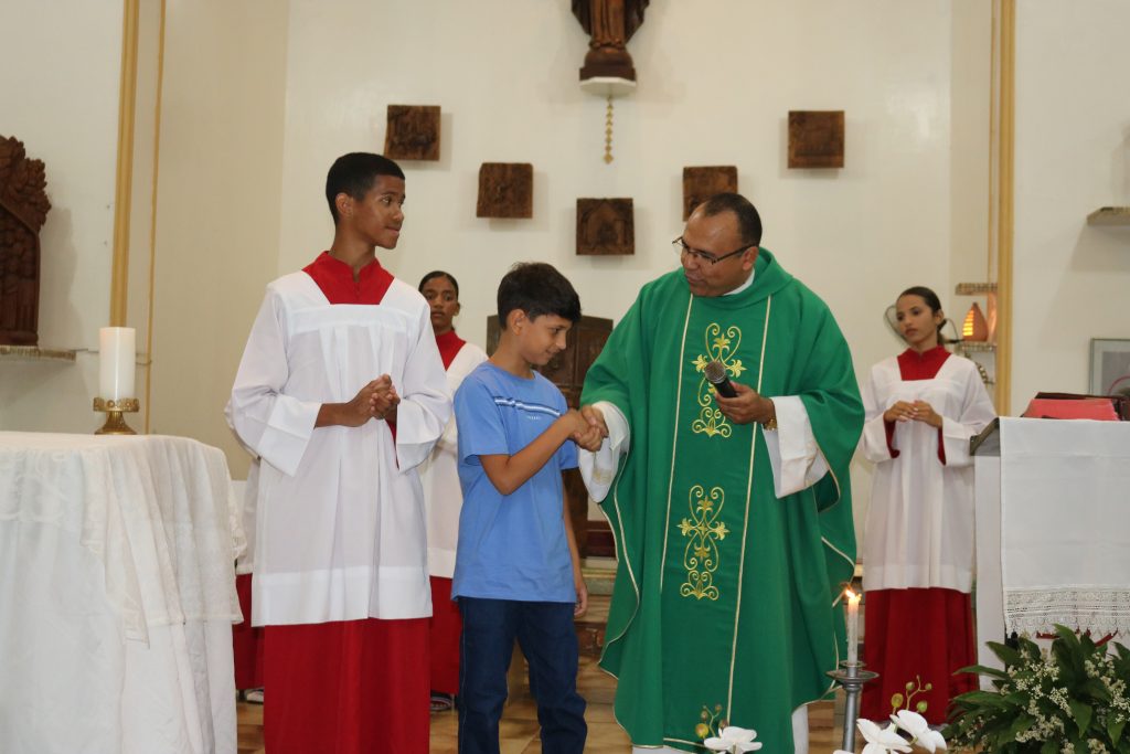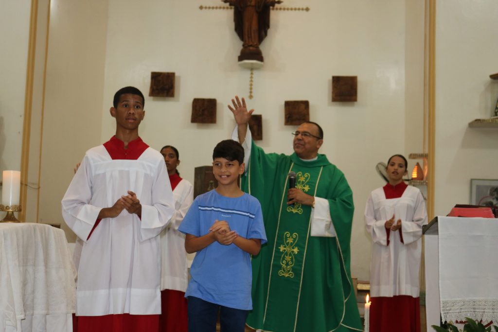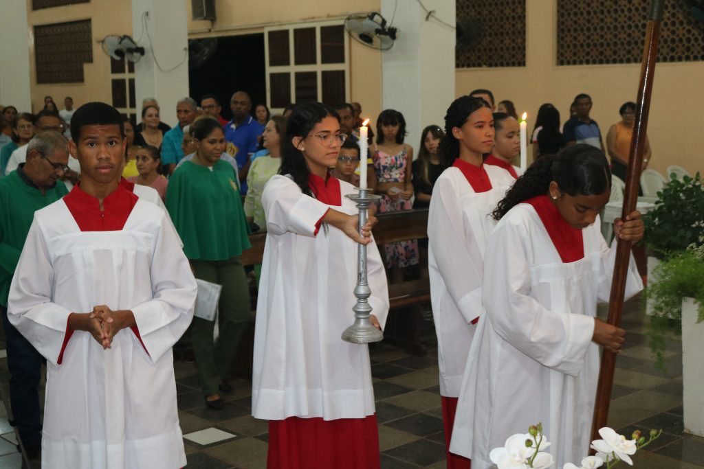 Para encerrar a noite com alegria, os fiéis cantaram os parabéns para João Miguel e o coroinha Marcos Luan, que estavam comemorando seus aniversários. Foi um momento de celebração comunitária e de união, demonstrando o amor e a fraternidade que permeiam a paróquia.
