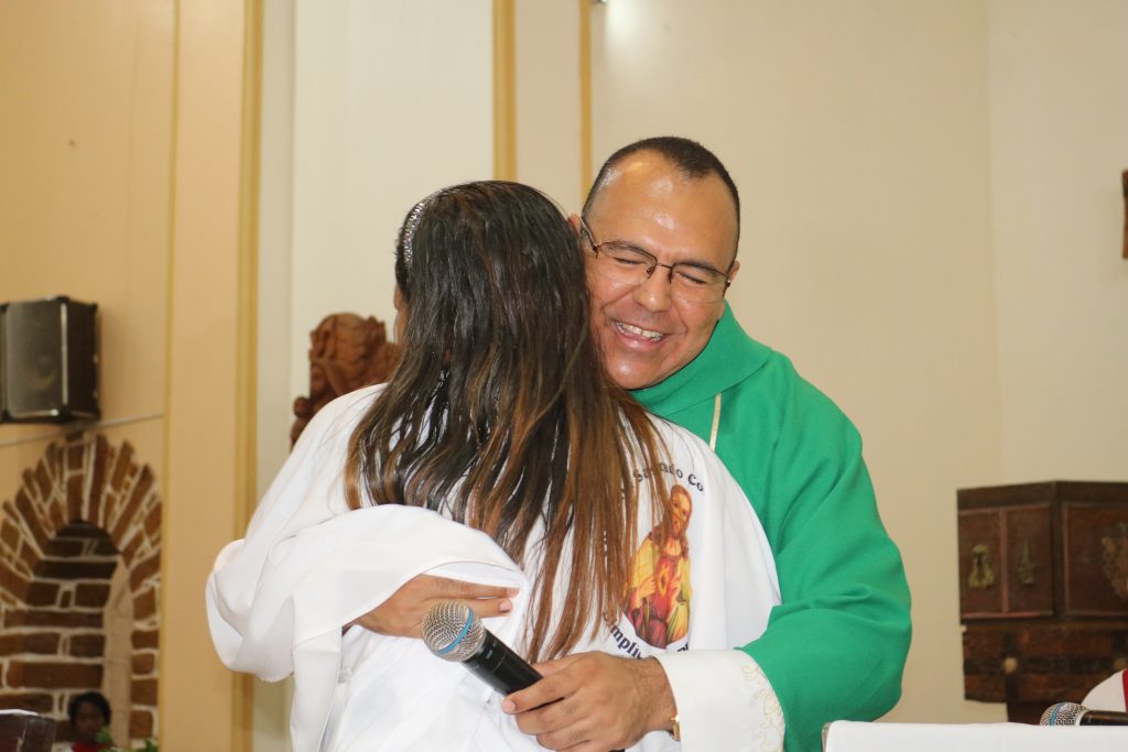 Um momento especial e emocionante aconteceu antes da bênção final, quando Roseli, em nome do Coral Santa Cecília, leu uma mensagem dedicada ao Padre Kleyton. A ocasião não poderia ser mais significativa, pois o padre celebrava seus 19 anos de vida sacerdotal. As palavras de carinho e agradecimento comoveram a todos, e o religioso expressou sua gratidão pelas inúmeras mensagens recebidas.