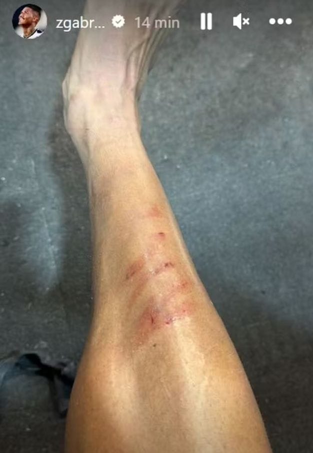 Zé Gabriel posta foto de perna machucada. Walney recebeu apenas amarelo no lance — Foto: Reprodução/Instagram