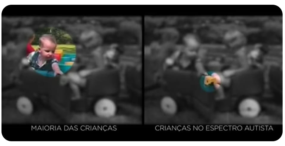 enquanto crianças atípicas estão de olho em outros pontos – como no movimento de porta de um carro (veja na imagem mais abaixo).