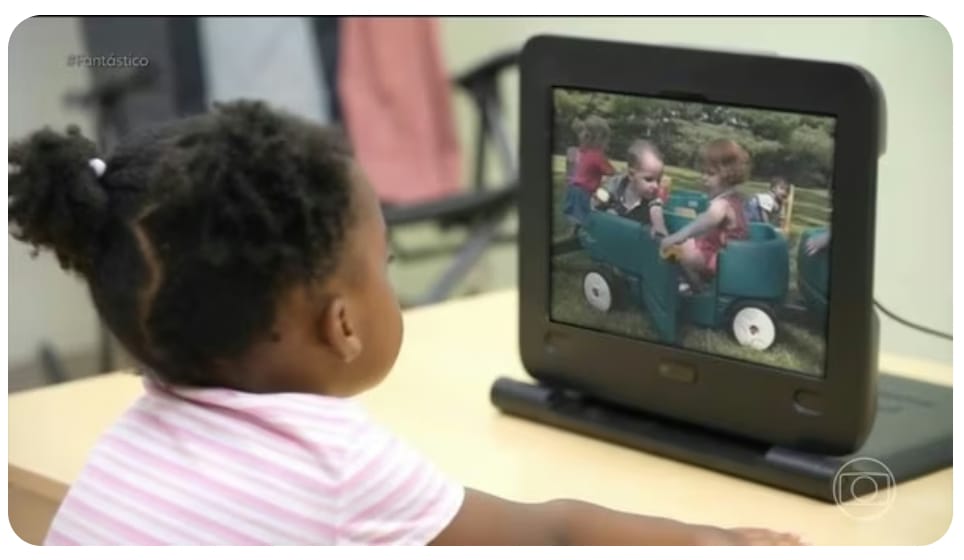 O Fantástico mostrou como é a sala – também chamada de laboratório – onde acontecem esses exames. O local tem brinquedos, câmeras e uma tela onde as crianças assistem os vídeos.