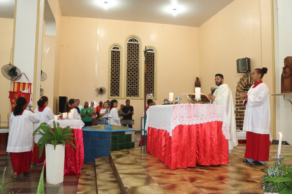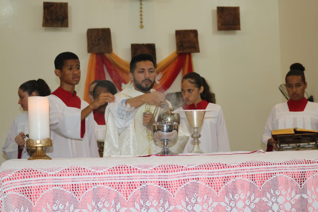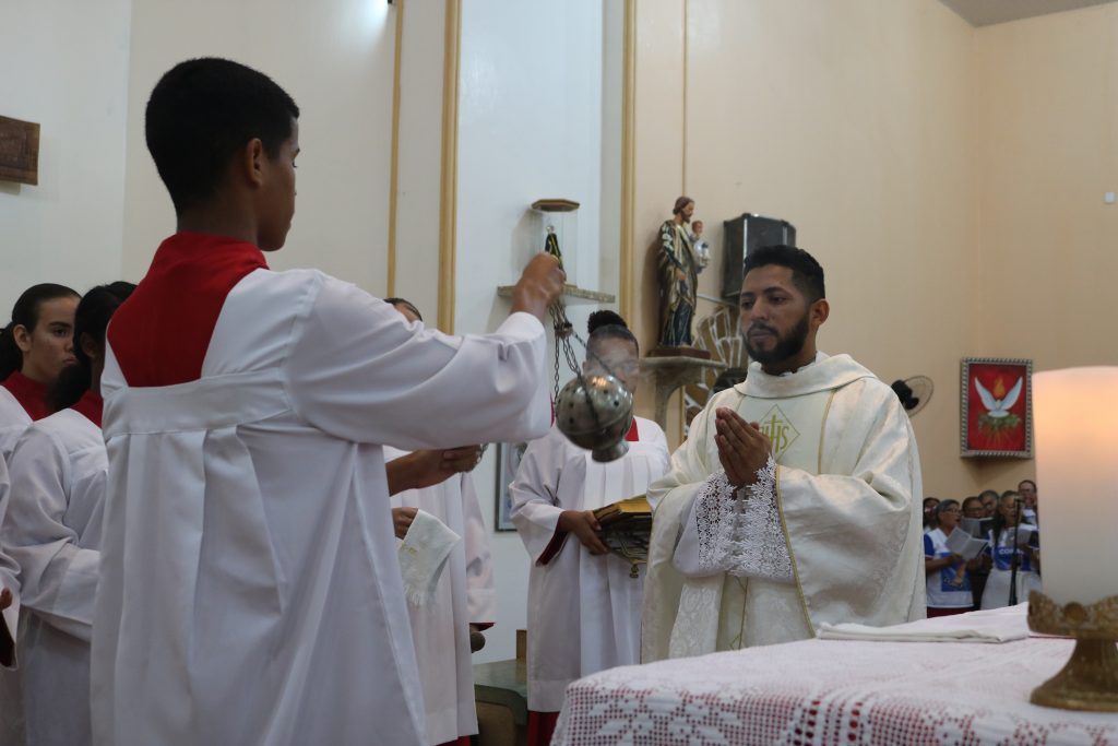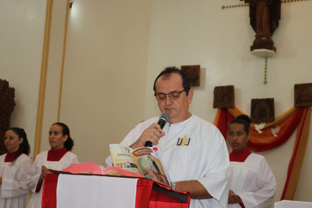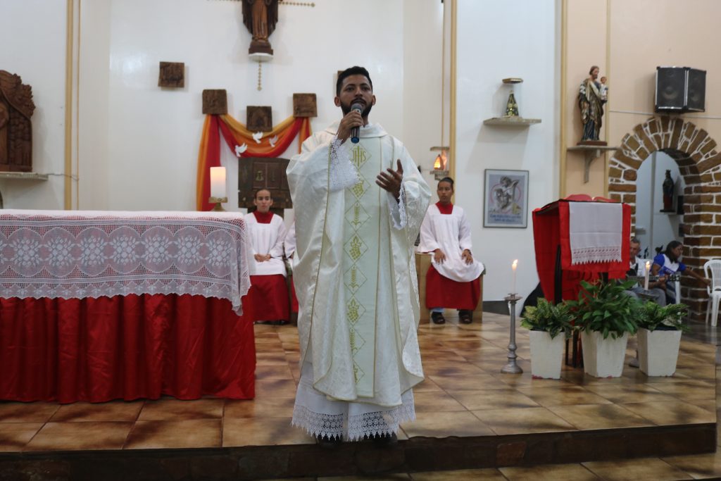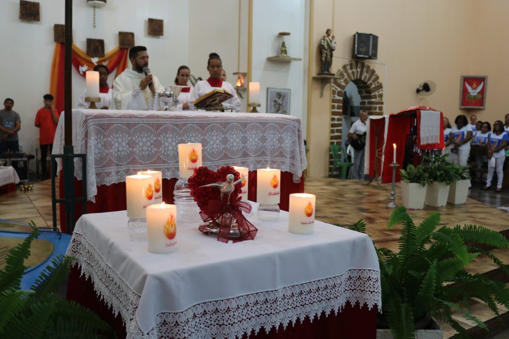 Na noite desta terça-feira (23) o Padre Wellington Rodrigues celebrou a missa no quinto dia da novena do Divino Espírito Santo.