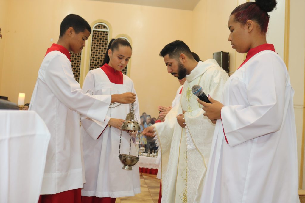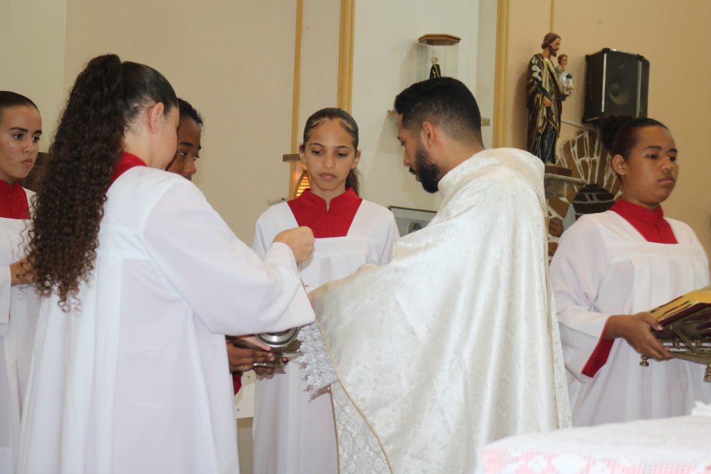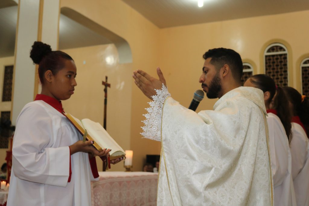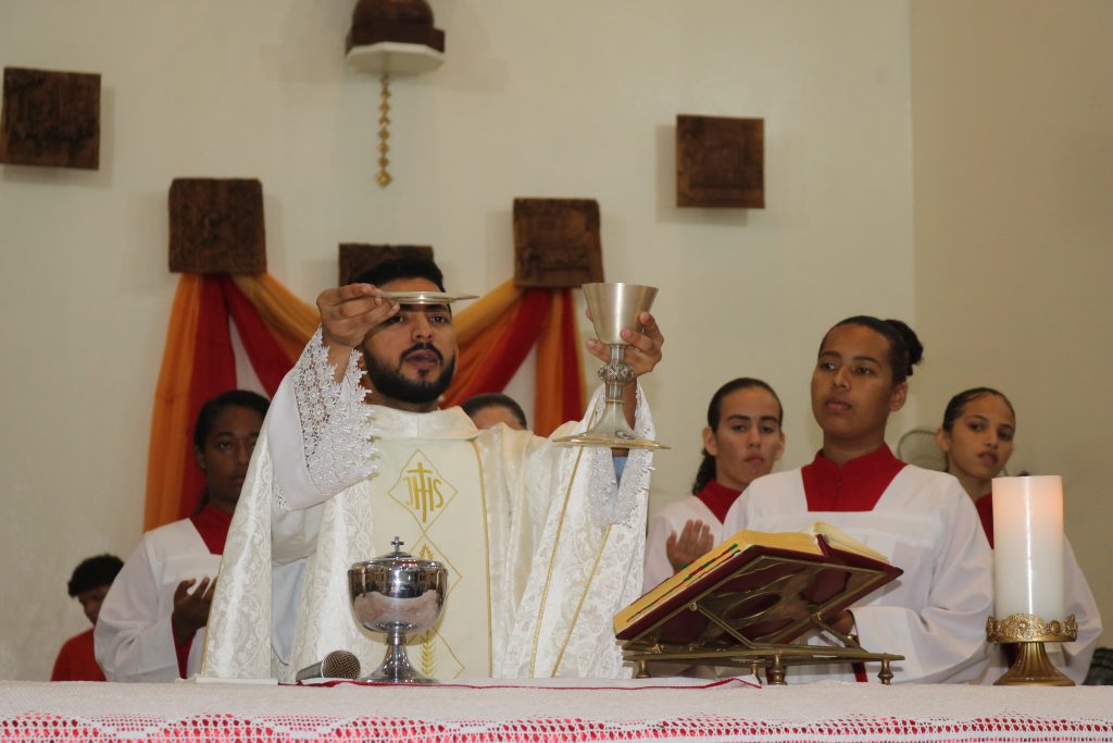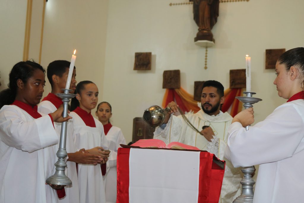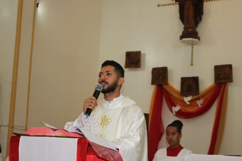 Na noite desta terça-feira (23) o Padre Wellington Rodrigues celebrou a missa no quinto dia da novena do Divino Espírito Santo.