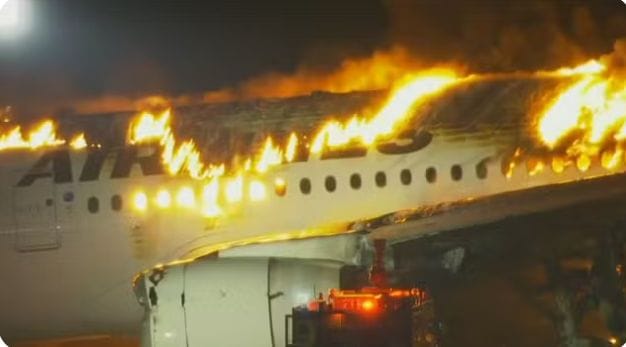 Aeronave da Japan Airlines bateu na pista de pouso em avião da Guarda Costeira, que levaria ajuda a região atingida por terremoto. Cinco tripulantes da aeronave da Guarda Costeira morreram, e piloto está em estado grave.