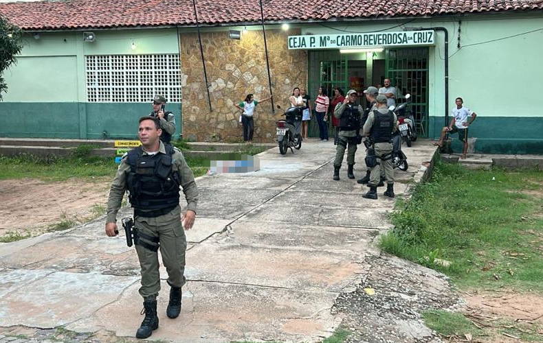 Câmeras de segurança registraram o exato momento em que o aluno Maciel Medeiros da Silva, de 18 anos, foi executado a tiros dentro do Centro de Educação de Jovens e Adultos (CEJA) Maria do Carmo Reverdosa da Cruz, no bairro Itararé, zona Sudeste de Teresina.