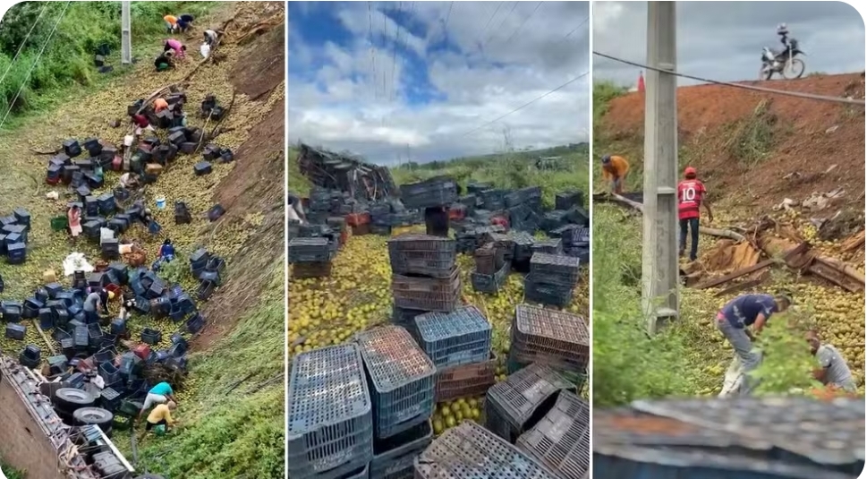 População saqueia carga de laranjas após acidente no PI — Foto: Reprodução (Cidades na Net)