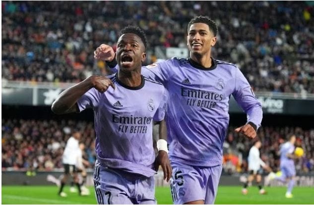 Vini Jr Vinicius Junior Bellingham Valencia x Real Madrid — Foto: Aitor Alcalde/Getty Images