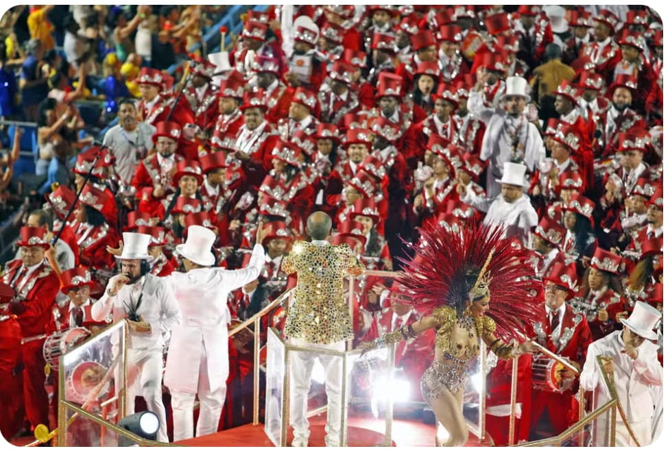 O desfile também contou com o retorno da atriz Juliana Paes como rainha de bateria, após 18 anos de sua última participação, conduzindo os ritmistas da Vermelha e Branca.