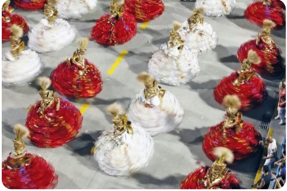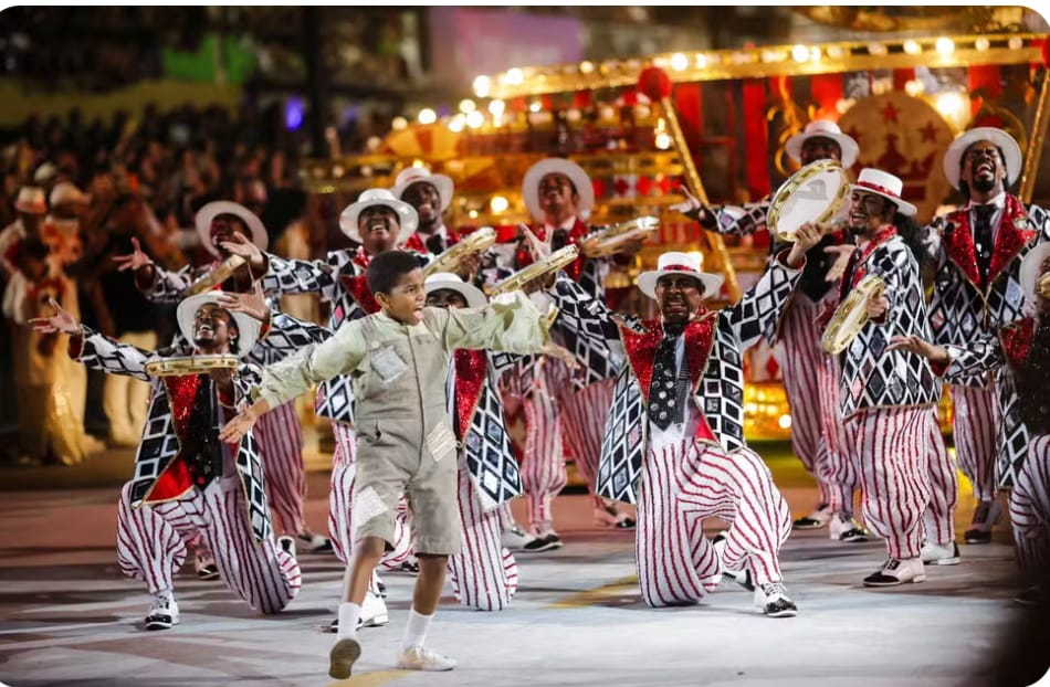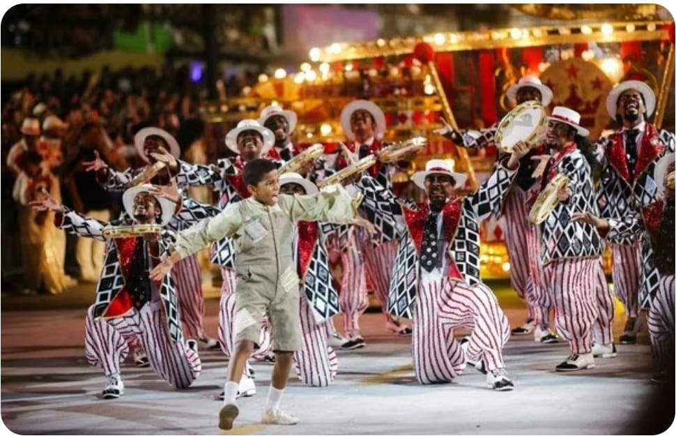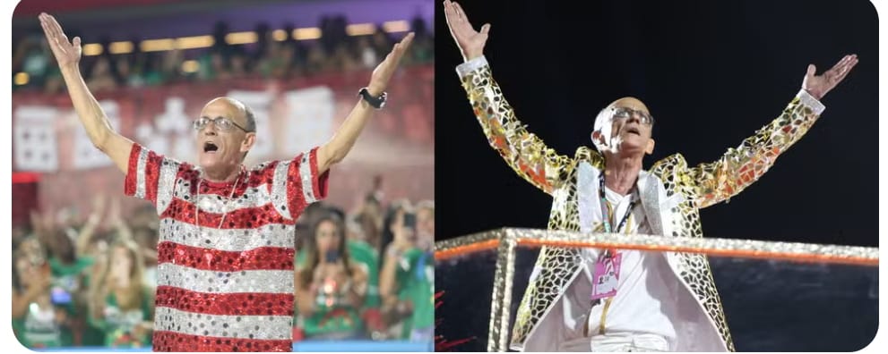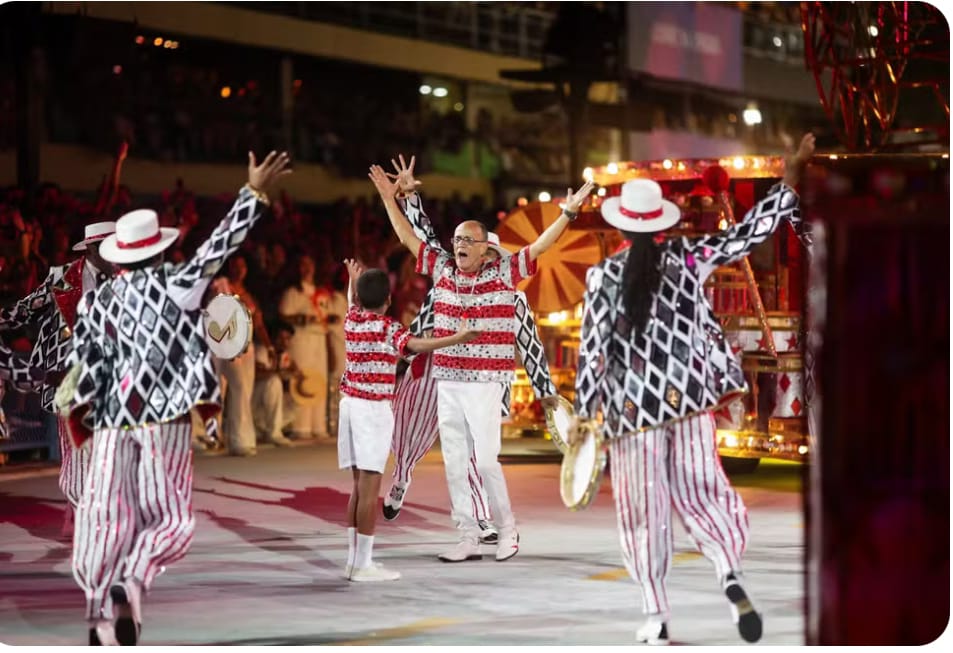 O mestre, então, tirou o paletó e se revelou para os holofotes. Ao lado de sua versão mirim, riscou a pista, lembrando seus tempos de passista.
